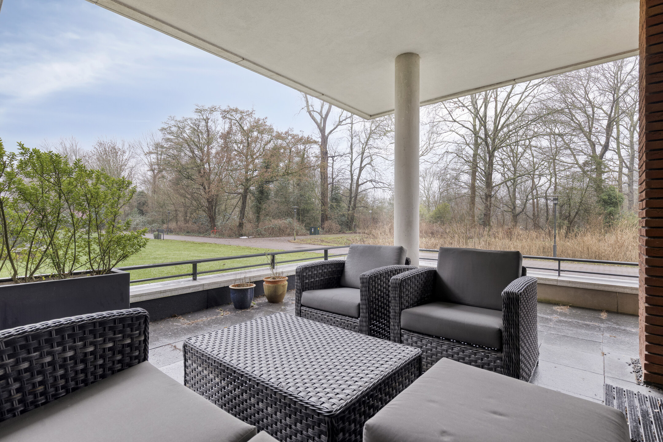 Spacious terrace with green views