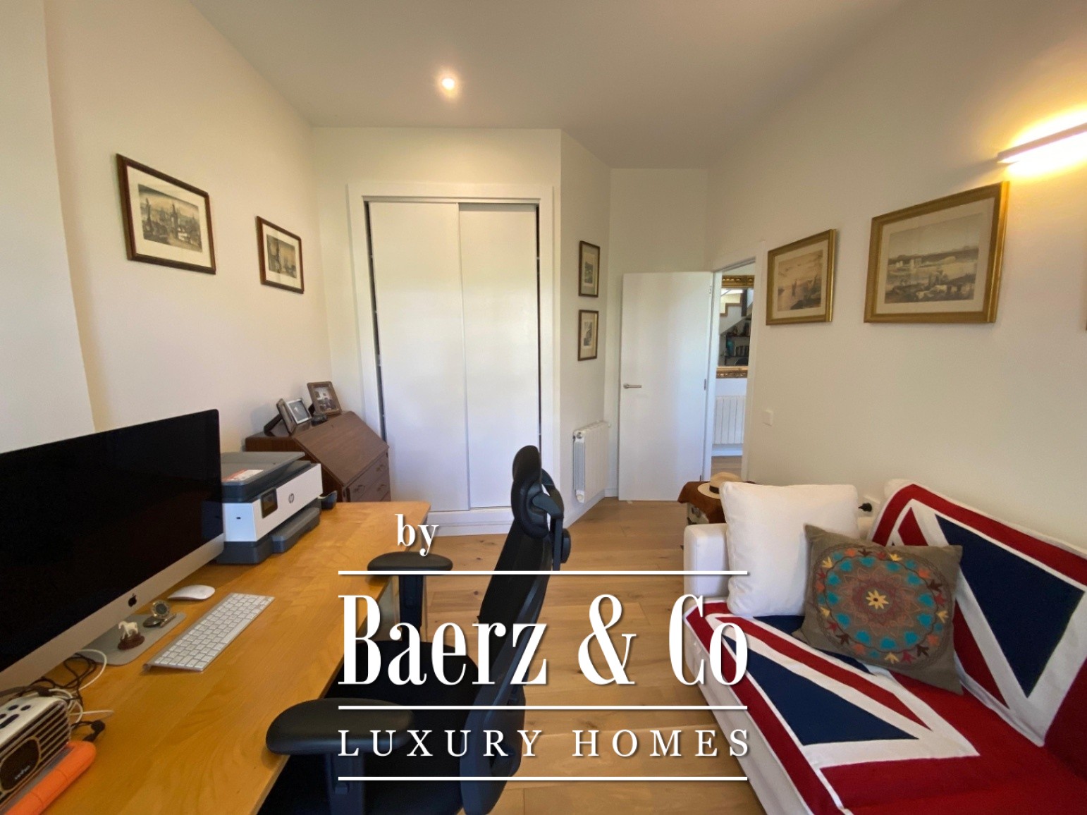 The heart of the villa is a 90 m² living room anchored by a fireplace and framed by expansive windows, leading to a terrace with sweeping vistas. The designer kitchen, equipped with high-end appliances, is complemented by a generous dining area tailored for gatherings. Four bedrooms and three bathrooms ensure space and privacy, while the master suite enjoys direct access to a broad glazed terrace and uninterrupted views.