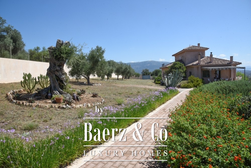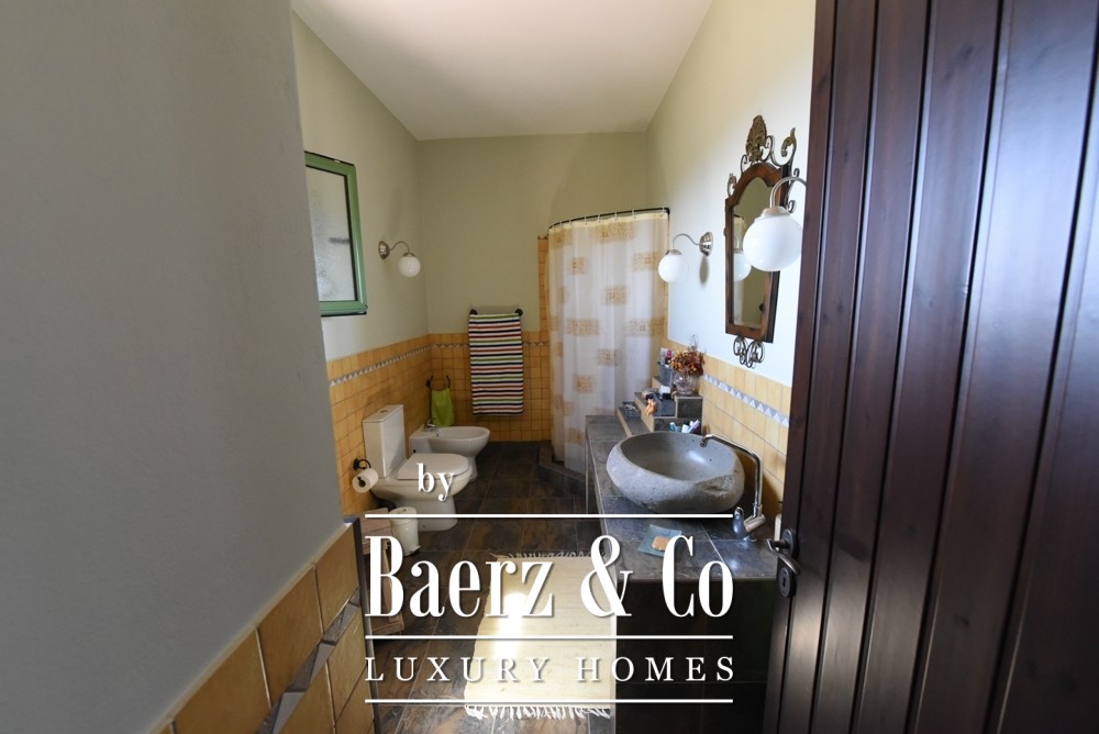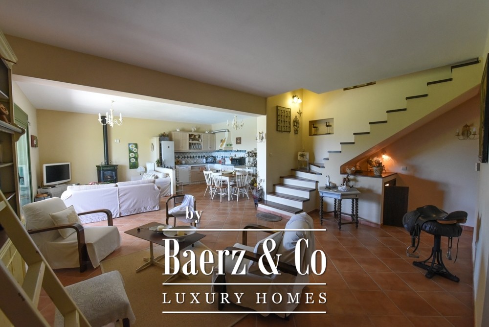 Expansive living spaces with built-in kitchens anchor daily life and entertaining. Double-glazed windows, security doors, air conditioning, autonomous heating on every floor, a fireplace, and three Italian wood stoves provide year-round comfort. Large terraces flow seamlessly outdoors, extending the living areas into the surrounding gardens, mature trees, and the inviting swimming pool that anchors the 5,000 square meter plot.