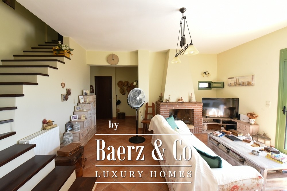 Tuscan-style villa Amarynthos captures Mediterranean elegance and contemporary comfort across 365 square meters and three levels, set in a peaceful corner of Greece. This villa enjoys panoramic sea and mountain views, offering both tranquility and an effortless connection to nature. Every room is shaped by generous volumes and a timeless aesthetic—five bedrooms, three bathrooms, a guest WC, and two walk-in closets are all thoughtfully designed, ensuring both function and refined character.