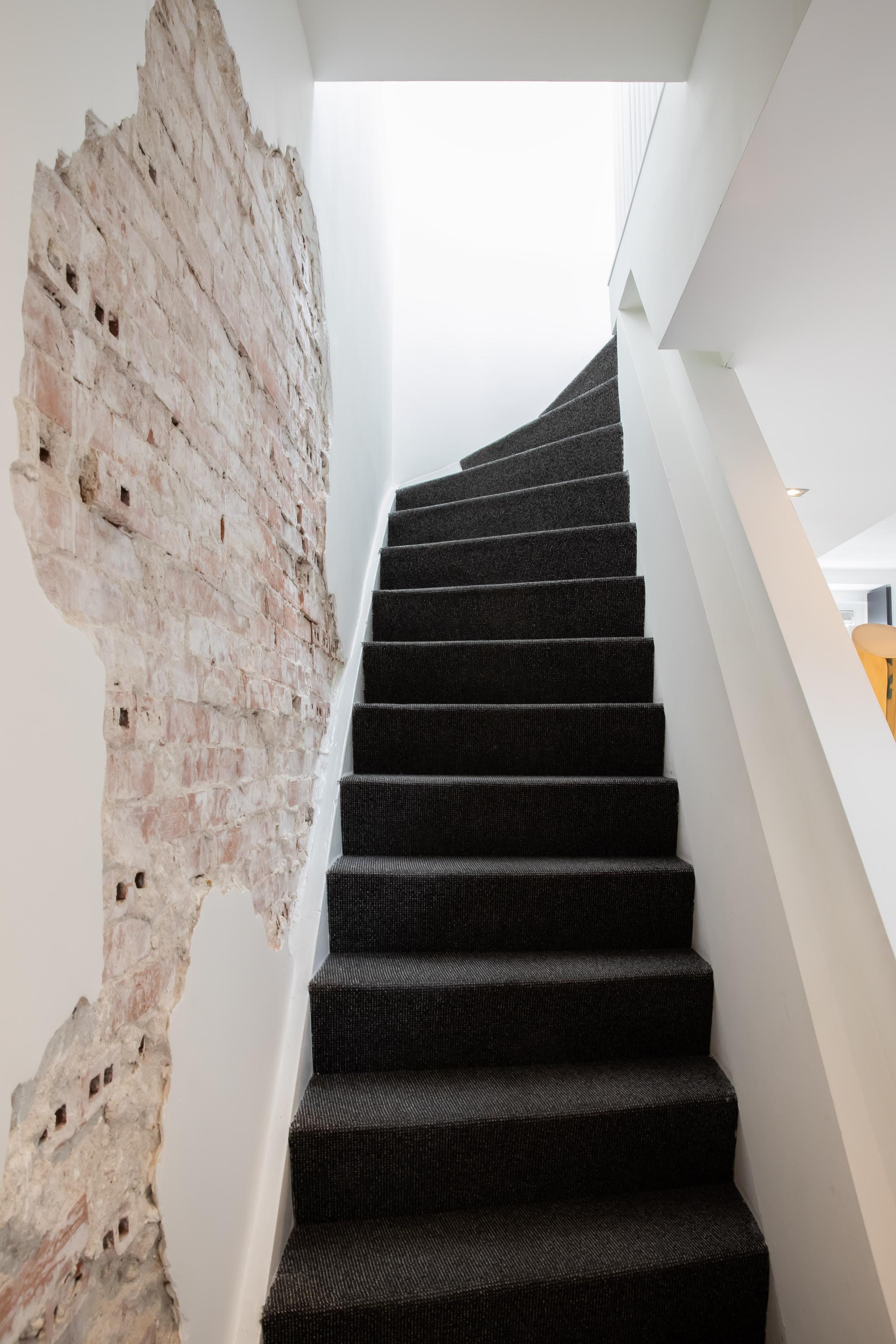The staircase leads directly into the spacious open-plan living room on the third floor. The room is extra wide and features no fewer than four windows – double the amount typically found in Amsterdam – allowing abundant natural light to flow in.