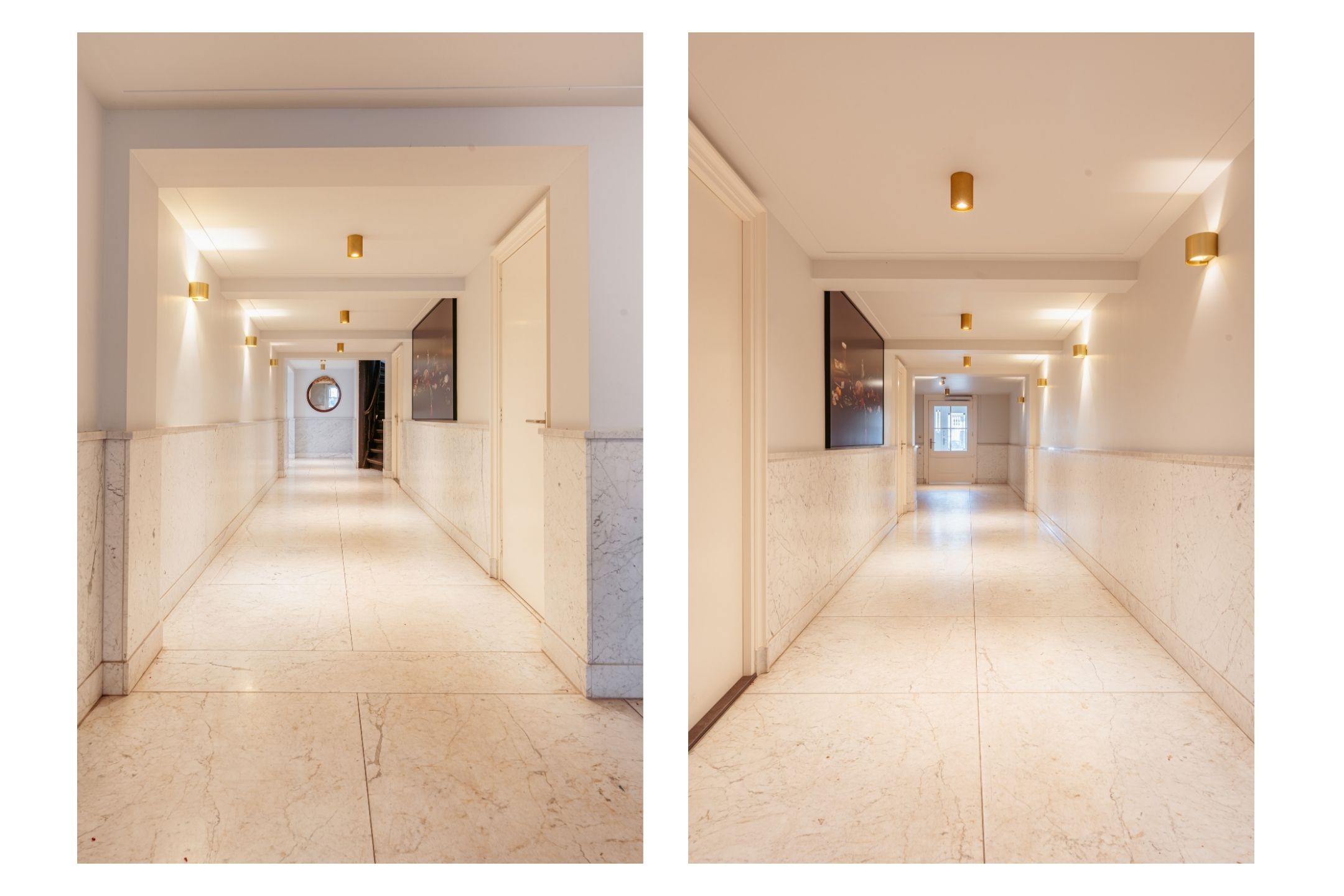 Upon entering the canal house, you are welcomed via a stately entrance into the marble hallway. The building and communal areas are very well maintained by a professionally managed homeowners’ association (VvE). A grand staircase or the elevator brings you to the second floor, where the apartment is located at the quiet rear of the building.