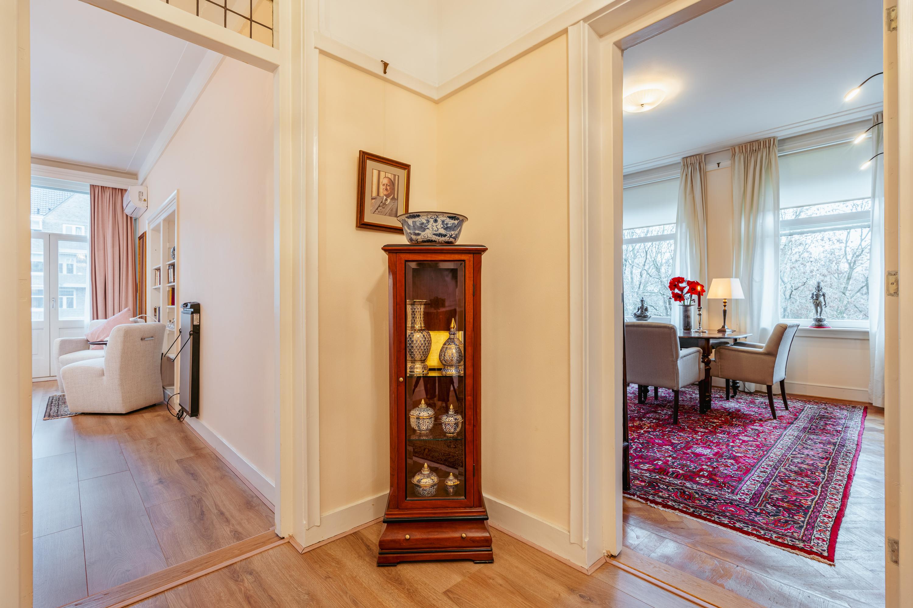 The apartment is situated on Stadionkade, in a quiet and green part of the highly regarded Stadion and Beethoven neighbourhoods in Amsterdam Zuid. This location offers a pleasant living environment that combines tranquillity, greenery and the vibrancy of city life. Owing to its corner position, the apartment enjoys views over both the water and Minervalaan, creating a spacious feel and an abundance of natural light. Directly in front of the building lies a sheltered green strip along the waterfront, providing a peaceful setting to enjoy the passing boats.