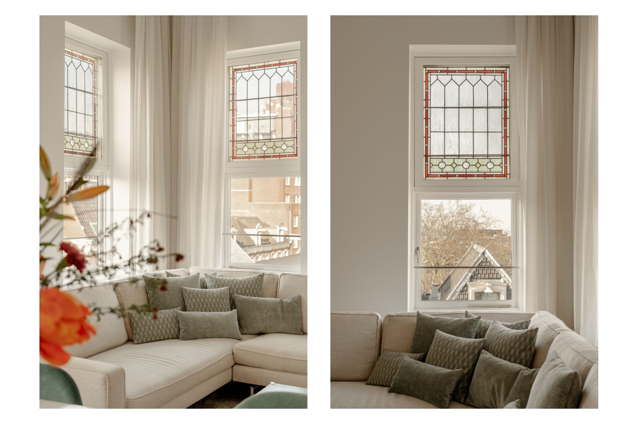 Located in the highly sought-after Vondelpark neighbourhood, this luxurious penthouse of approximately 115 m² is situated in a characteristic listed (monumental) building with elevator. The apartment combines authentic details with modern living comfort and is distinguished by its high-quality finishes and bespoke cabinetry throughout. Large windows provide an abundance of natural light and offer beautiful views over the city. In addition, the property is situated on freehold land, making it even more attractive.