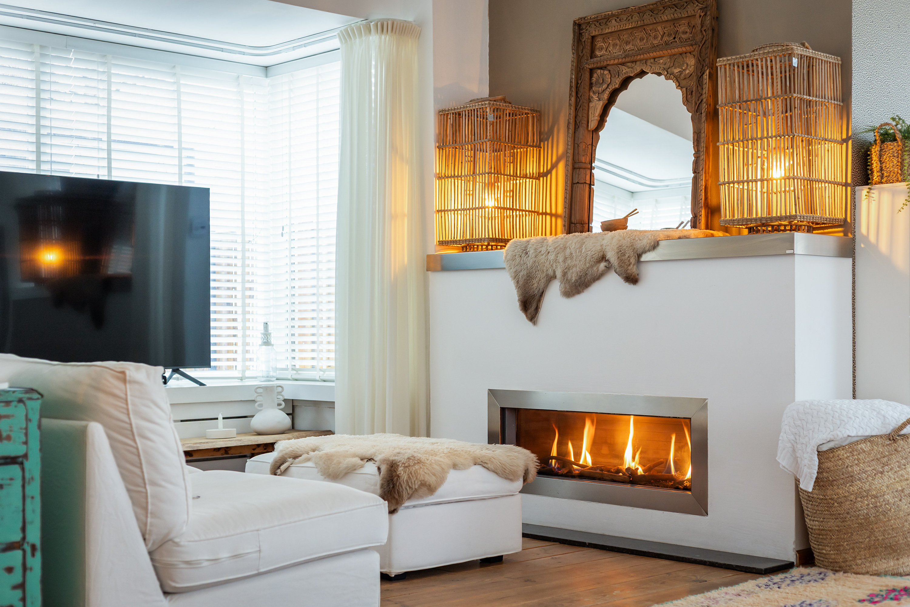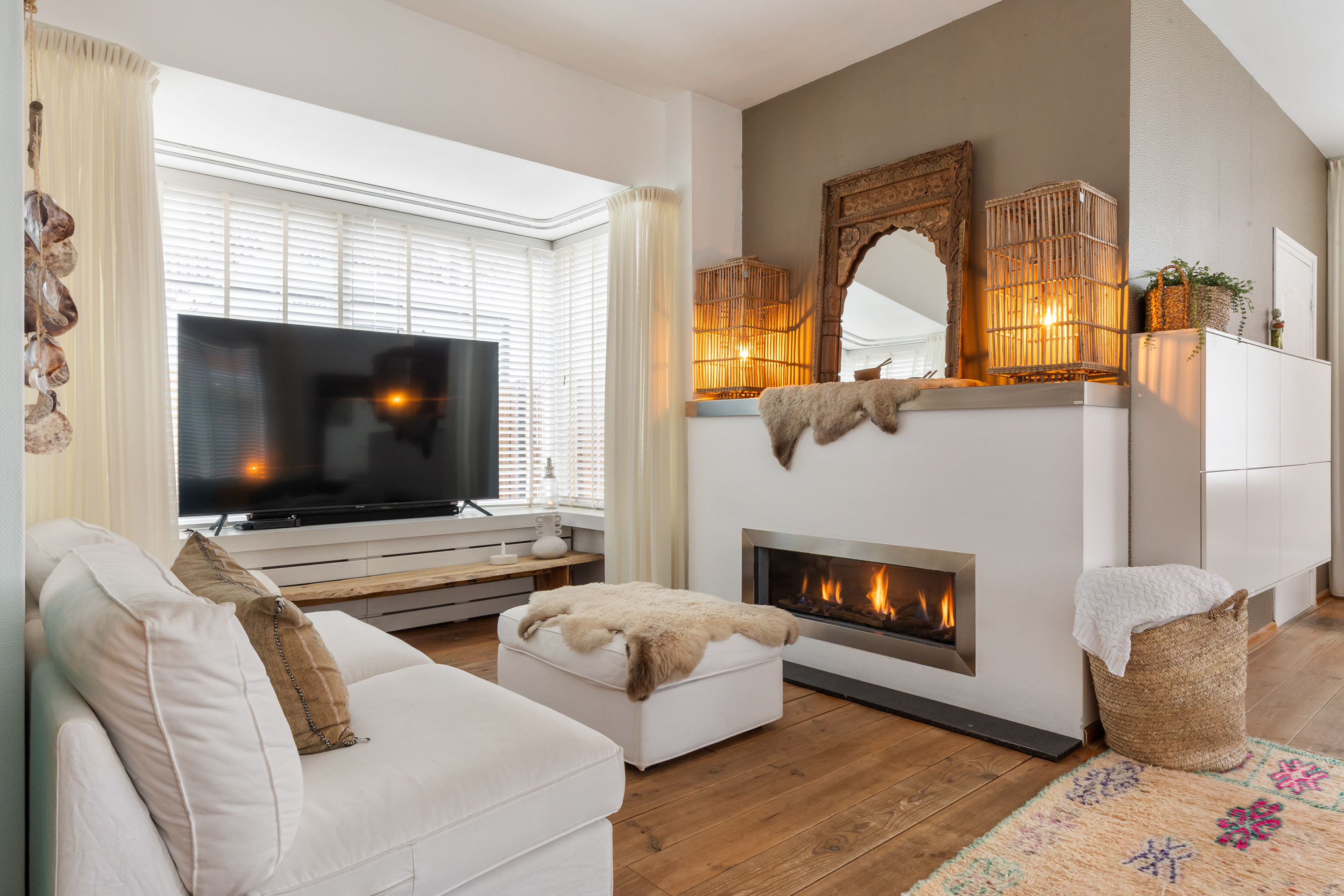 From the front of the property the full extent of the living space is hardly visible. Once inside, the space unfolds impressively, offering several living and sleeping areas, two bathrooms, two garages, two verandas and a sunny, fully private garden with swimming pool. The current finish is contemporary and inspired by a warm South-European Ibiza style. In 2026 the exterior was finished in a warm tone and fitted with characteristic louvre shutters. Combined with the sunny terraces and the pool, this creates a relaxed and almost Mediterranean atmosphere.