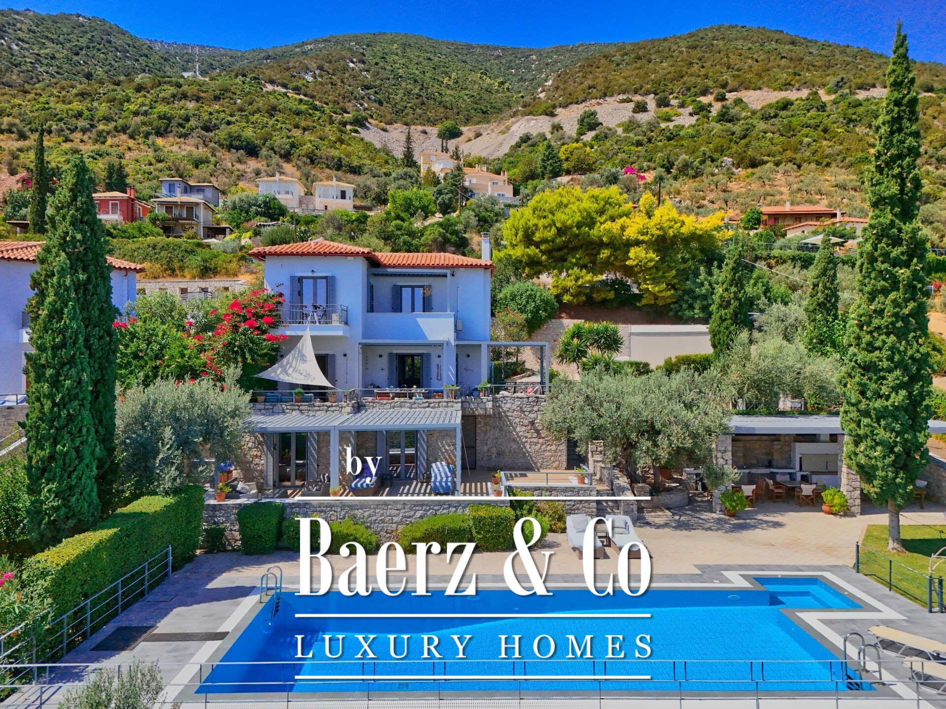 Detached house Archaia Epidavros presents a refined balance of timeless materials and contemporary design, set within a 1,500 m² privately owned garden overlooking the sea. This 198 m² residence underwent a full renovation beginning in 2018, highlighting quality of materials, bioclimatic pergolas, and smart living solutions that suit both permanent and holiday living.