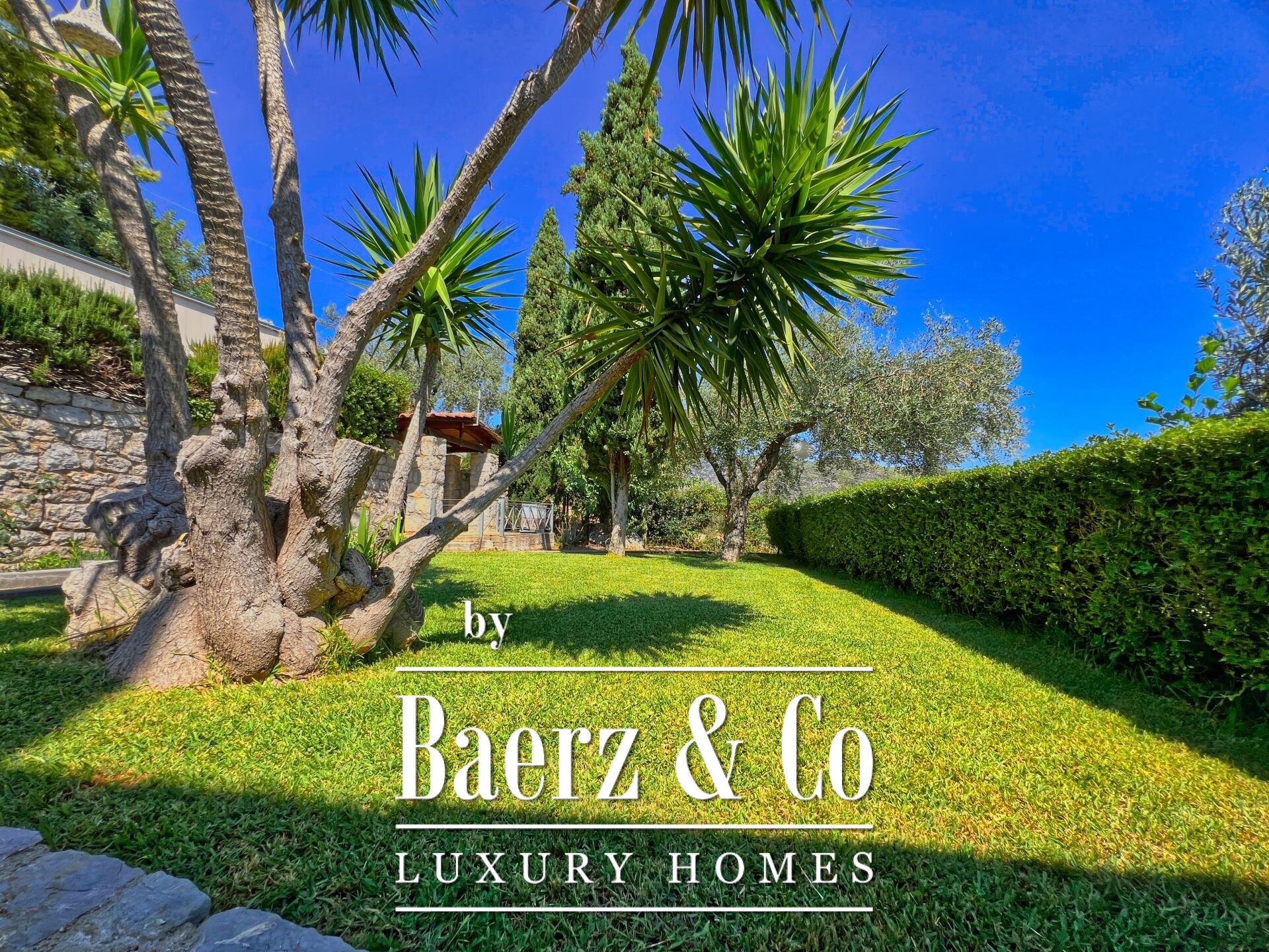 The landscaped garden is secured by stone fences and shelters a 70 m² swimming pool with expansive views, cypresses, olive trees, and carefully designed outdoor living areas. Additional features include a stone chapel, covered parking for three cars, and energy-efficient upgrades such as new aluminum frames, double-glazed windows, a solar hot water system, modern alarm, and underfloor heating. Three large water tanks support both sustainability and comfort.