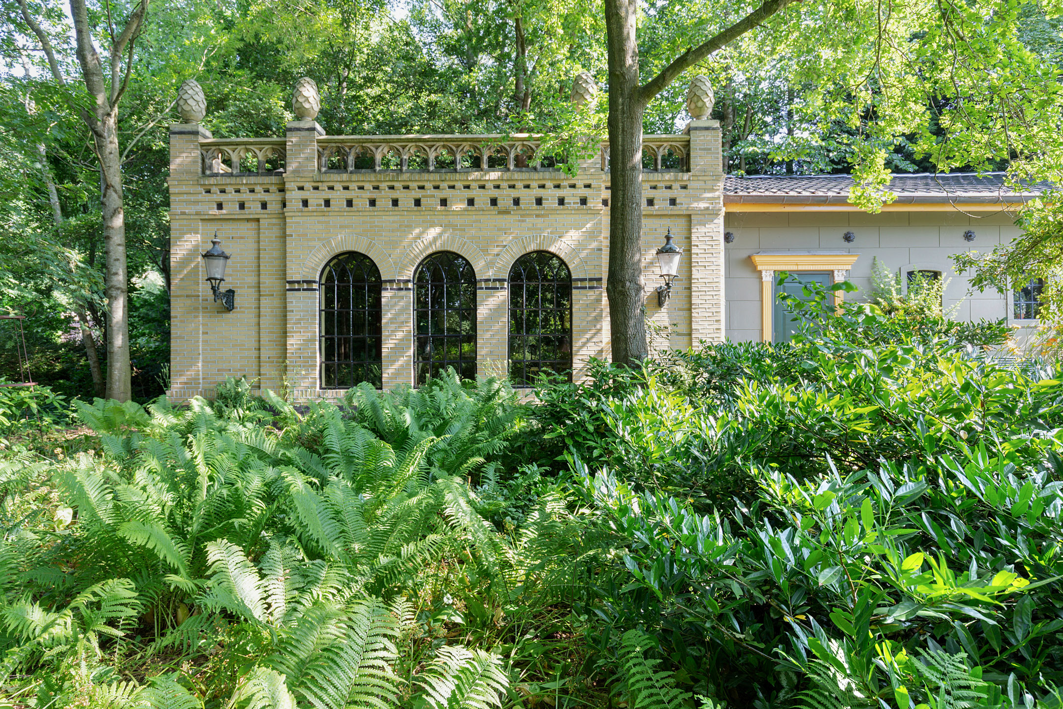 What began as a plot of approximately 1,600 m² has grown into a remarkable estate of approximately 3.18 hectares. The gardens were carefully designed to combine formal and natural elements, including two (swimming) ponds, multiple terraces, garden houses, a conservatory with vegetable garden, wooded areas, and expansive lawns.