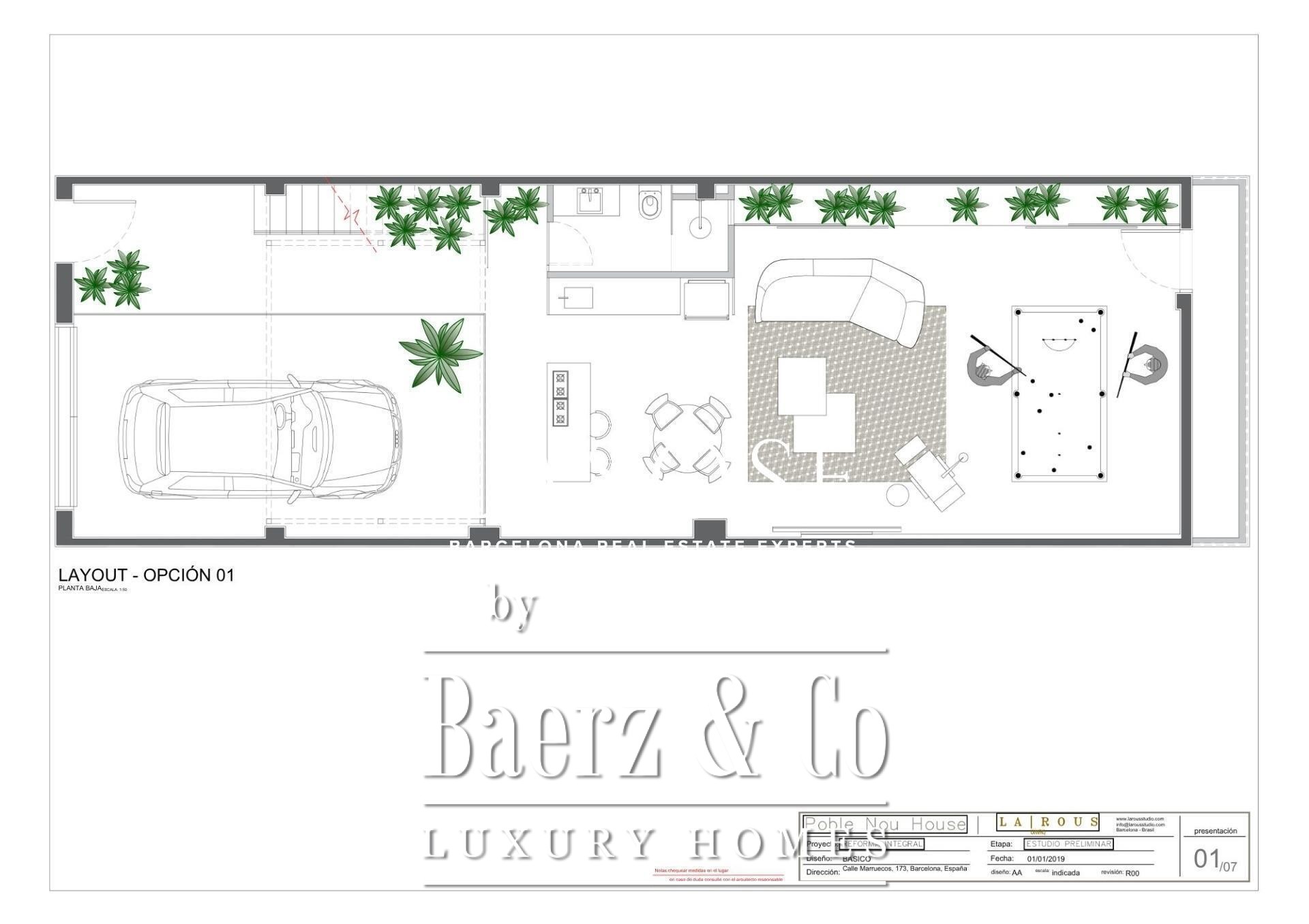 The top floor is reserved for rest and retreat, comprising two double bedrooms, both with en suite bathrooms. The master suite’s walk-in wardrobe and underfloor heating yield a sense of comfort and discretion. A 55 m² rooftop terrace connects with the kitchen level terrace below, creating a generous setting for gatherings or quiet contemplation. Situated on Calle Marroc, the home is moments from Diagonal Mar Shopping Centre and just a ten minute walk from the Mediterranean shoreline, accessible to city amenities yet quietly private. Townhouse Poblenou Barcelona embodies the intersection of sophisticated design and urban lifestyle.
