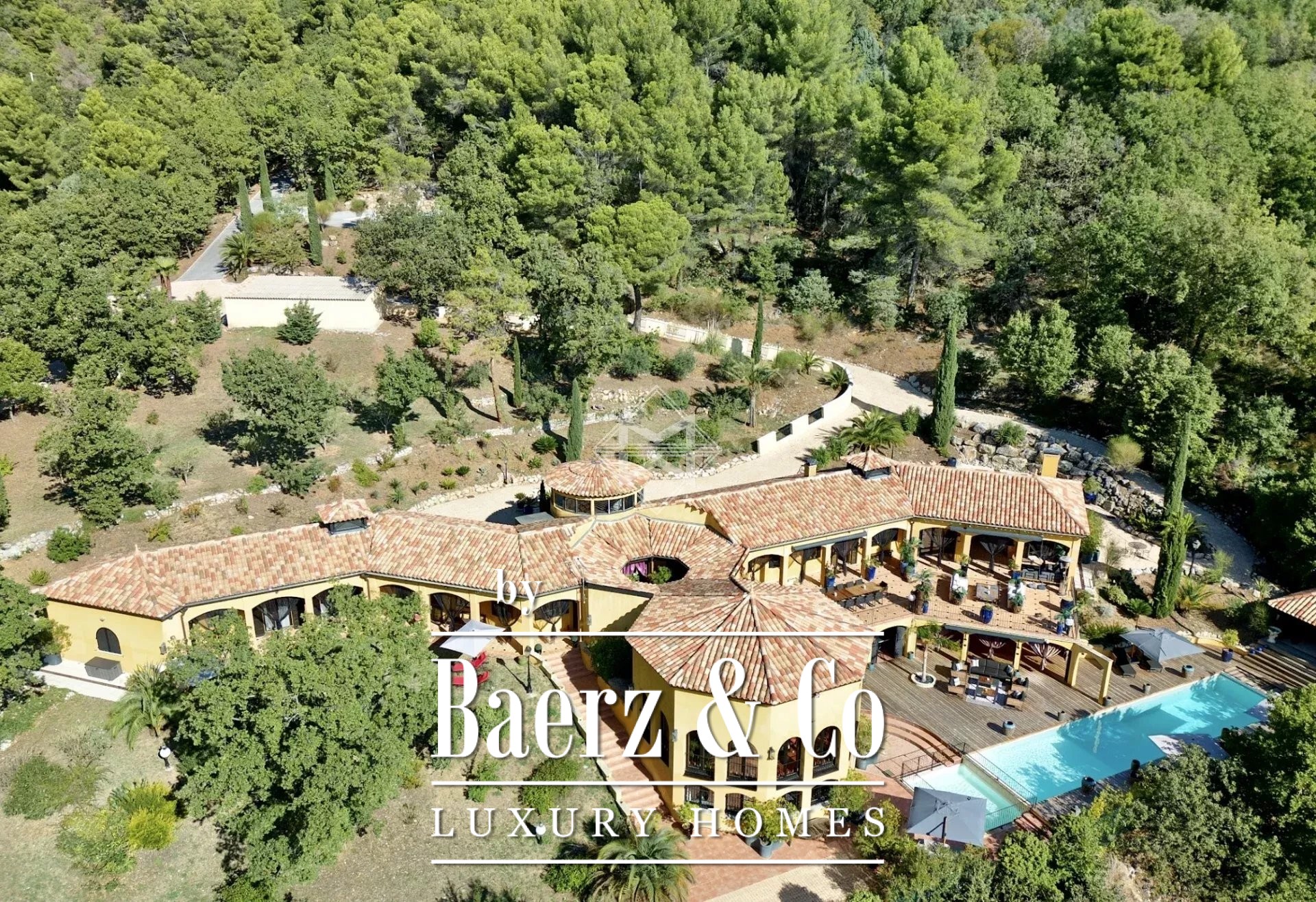 Property Bargemon welcomes you to over 522 m² of living space bordered by untouched forest and rolling hills, just beyond the tranquil center of Bargemon. This estate balances Provencal character with subtle colonial accents, offering a seamless rhythm between interior volumes and the surrounding 52,357 m² of natural landscape.