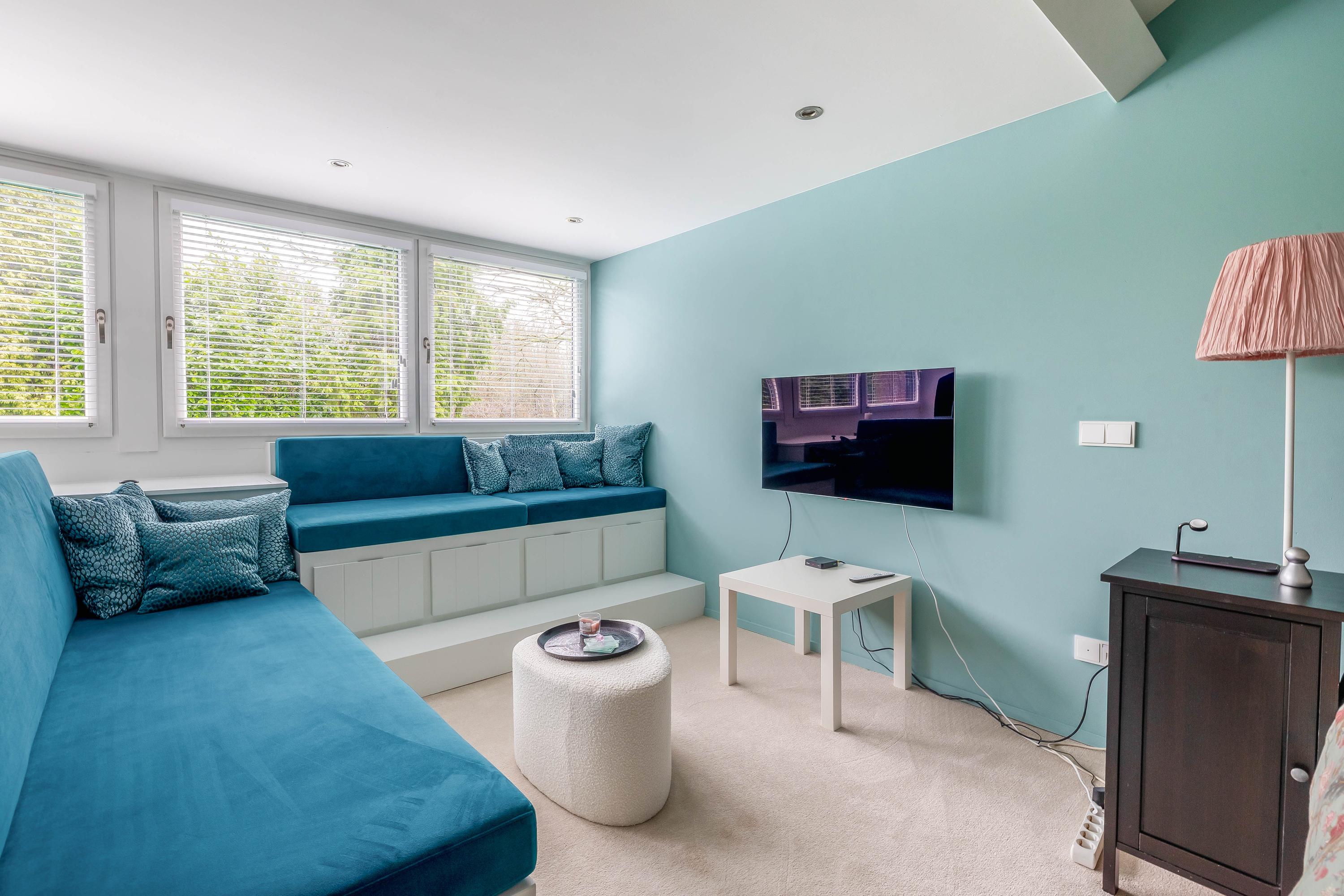 From the stunning, high L-shaped living room (approx. 72 m²), there is a fantastic view of the River Maas. The high ceiling, numerous windows, and double sets of garden doors ensure beautiful natural light. The solid kitchen (approx. 7 m²) is equipped with an induction hob, extractor hood, dishwasher, refrigerator, and a combination steam oven. From here as well, there is a lovely view of the Maas. The kitchen is finished with a composite worktop.