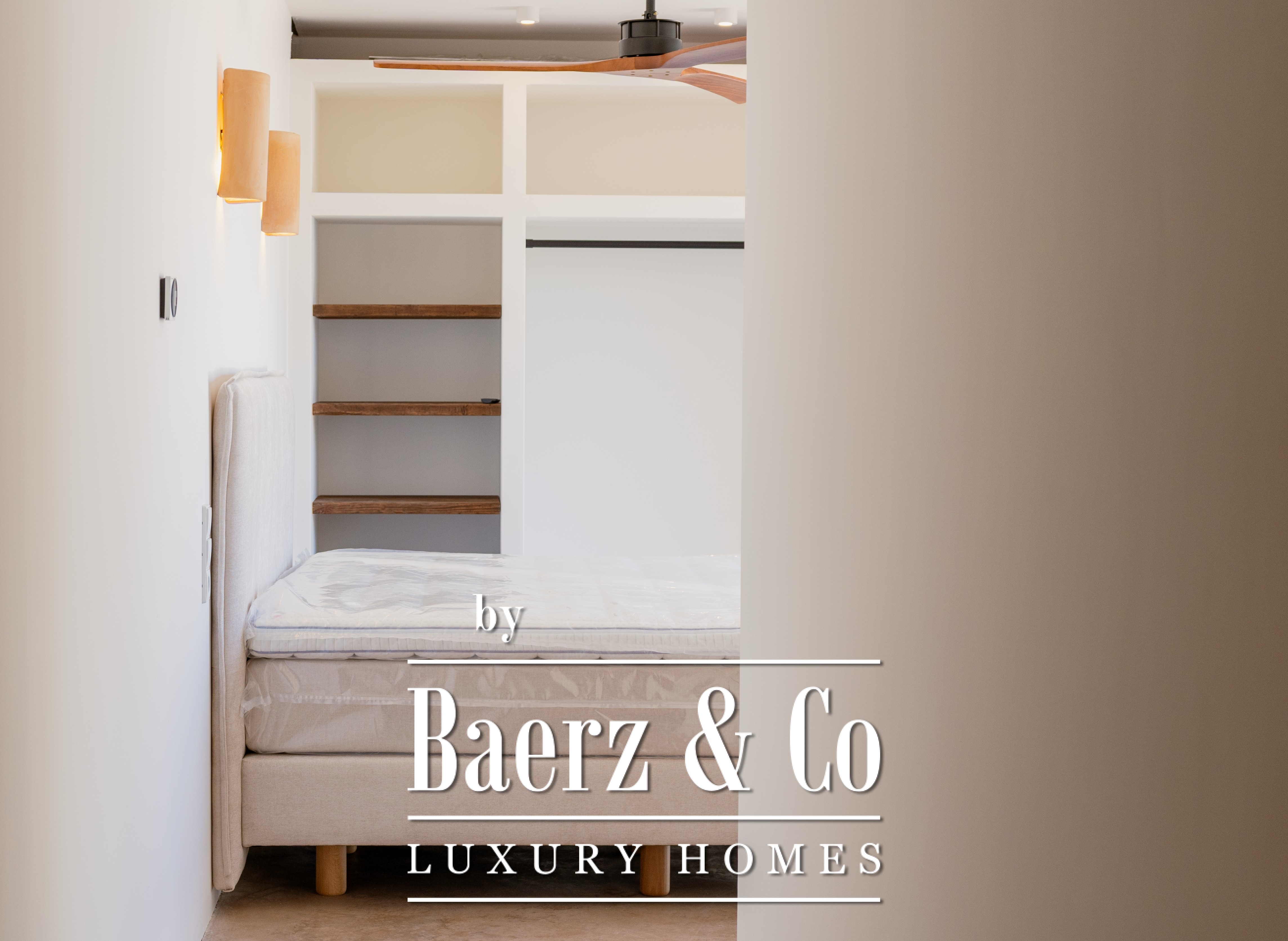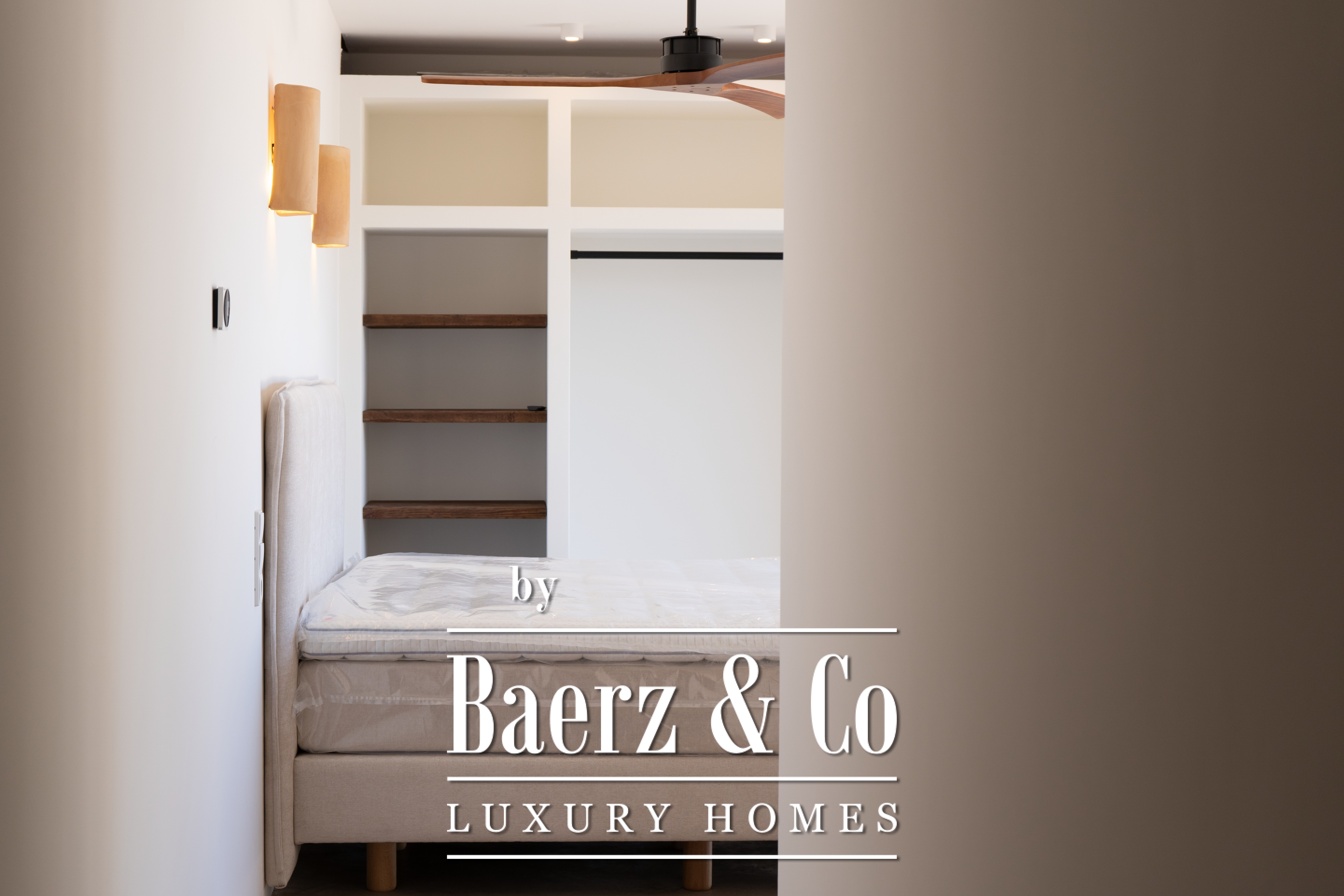 The lower floor offers two spacious bedrooms, each with its own en-suite bathroom and access to a private terrace, as well as an outdoor kitchen with BBQ. A versatile space on this level will be fully customized to the buyer’s wishes, with possibilities for extra bedrooms, a gym, wellness area, or garage.