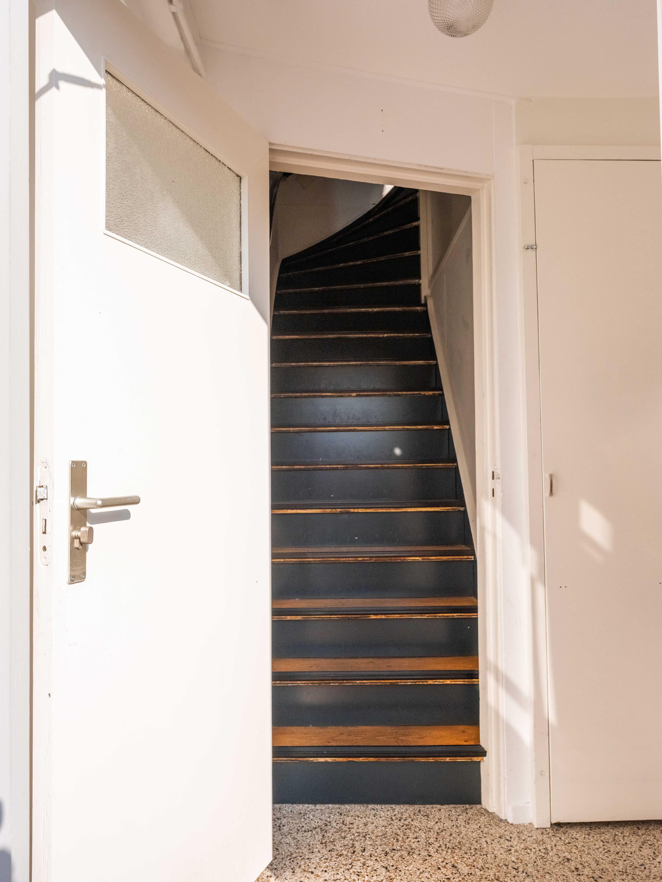 The upstairs apartment (approx. 76 m²) features a very spacious living room with a French balcony and views of Bergen’s two churches. The charming dormer window was fitted with a new frame and insulated glass in 2023 and is currently used as a cozy sitting area. The centrally located wood-burning stove not only creates atmosphere but also provides a pleasant and comfortable indoor climate.