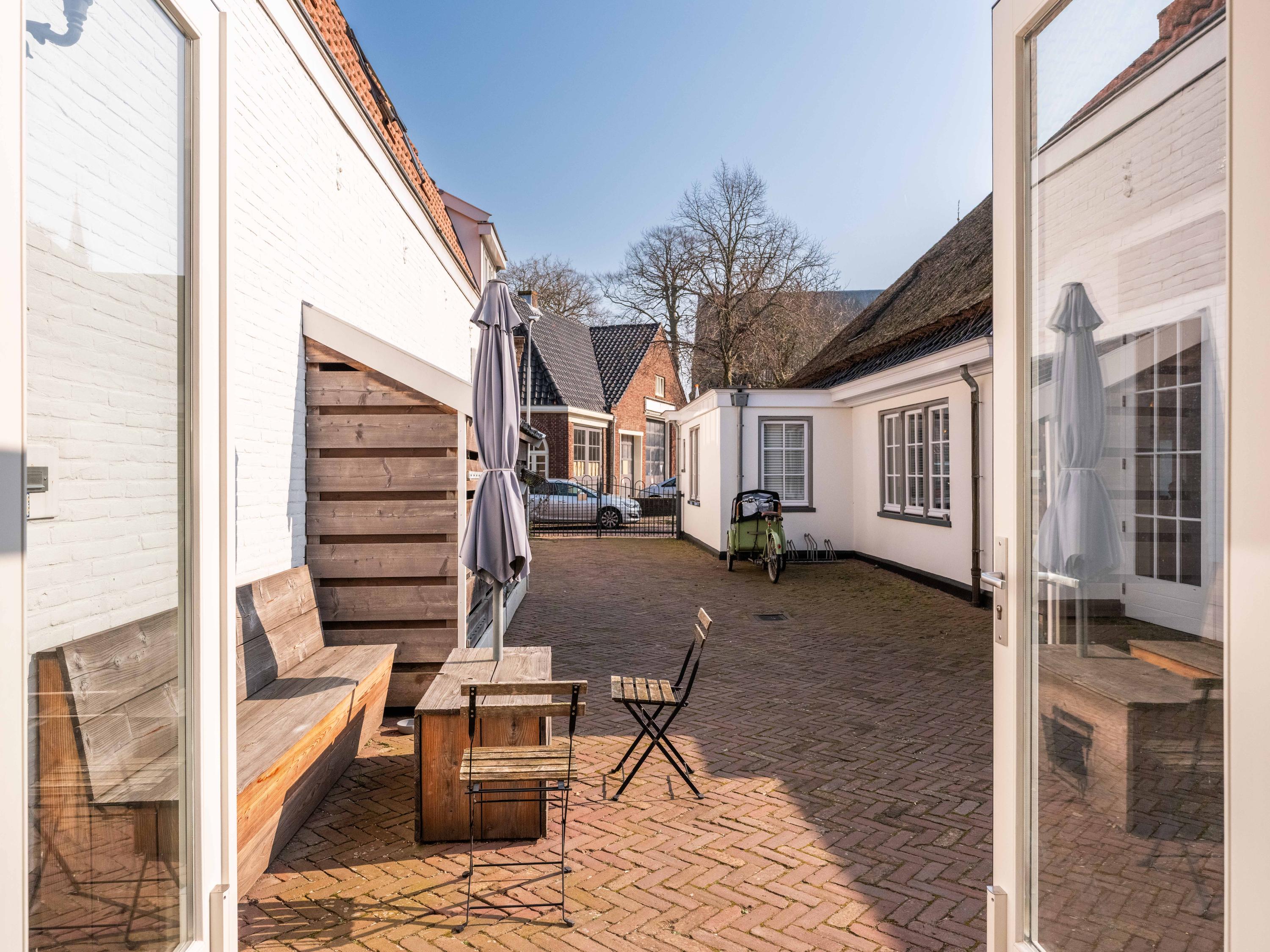 Behind the shop is a separate office space, ideal for a home-based practice, workspace, or expansion of the shop or residence. This space of approximately 43 m² was fitted with a new façade with French doors in 2023.