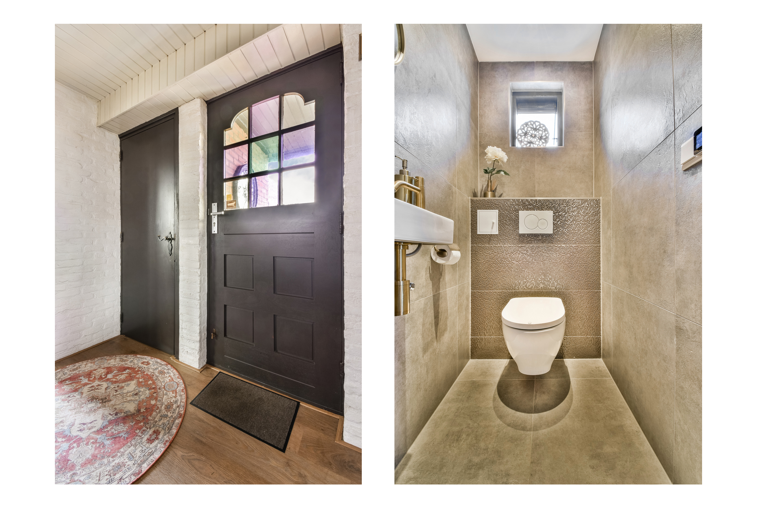 Entrance hall with toilet and access to the kitchen and living room.