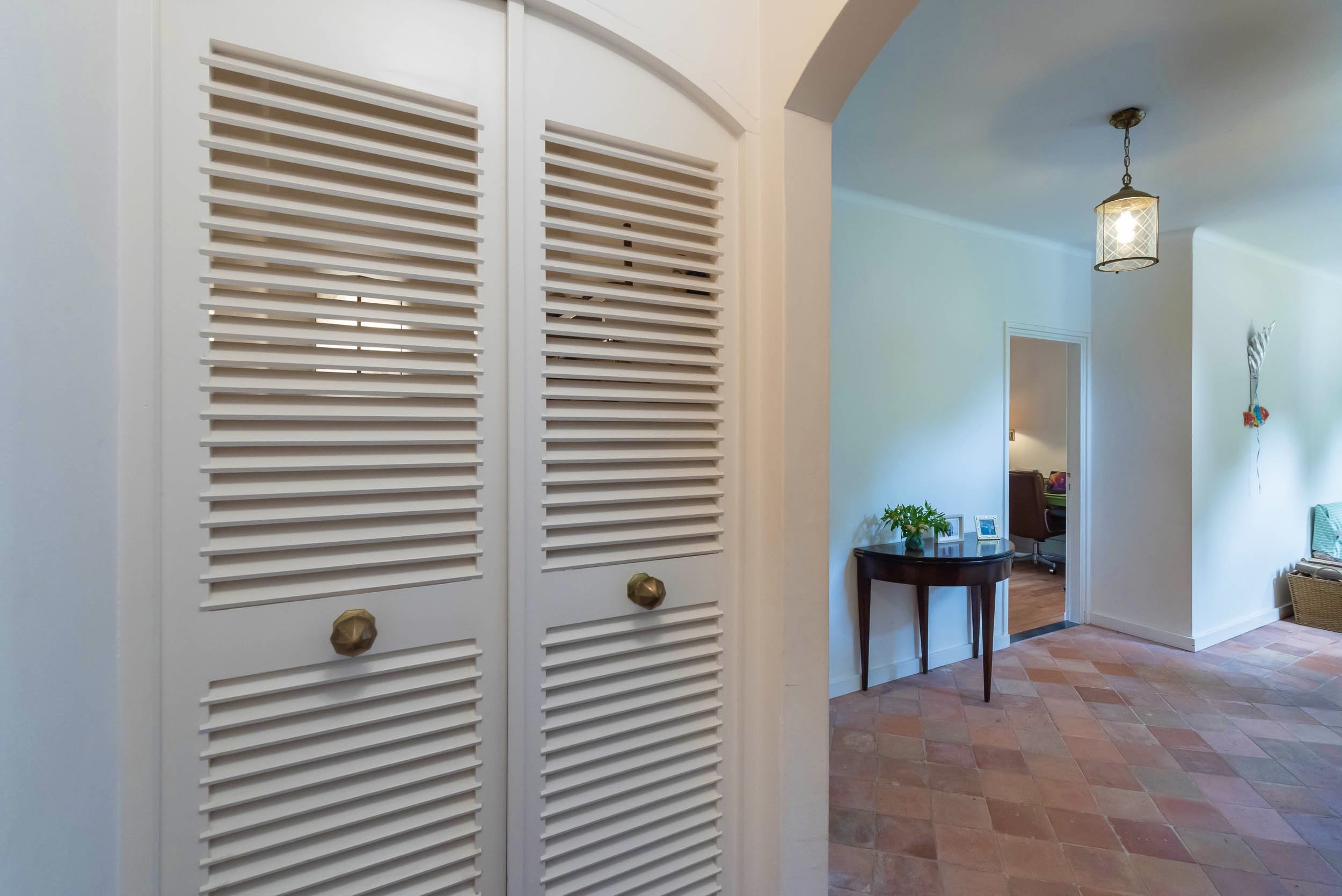 Detached villa Bloemendaal offers a refined architectural presence within the sought-after Duin en Daal villa park. Designed by H.W. van Kempen, this property evokes Mediterranean lightness with its subtle blue Louvre shutters, hipped roof, and the authentic character of French tiles in the hallway. Set on a substantial 4420 m² private plot, the house is surrounded by mature trees and elevated above the road, providing optimal privacy.