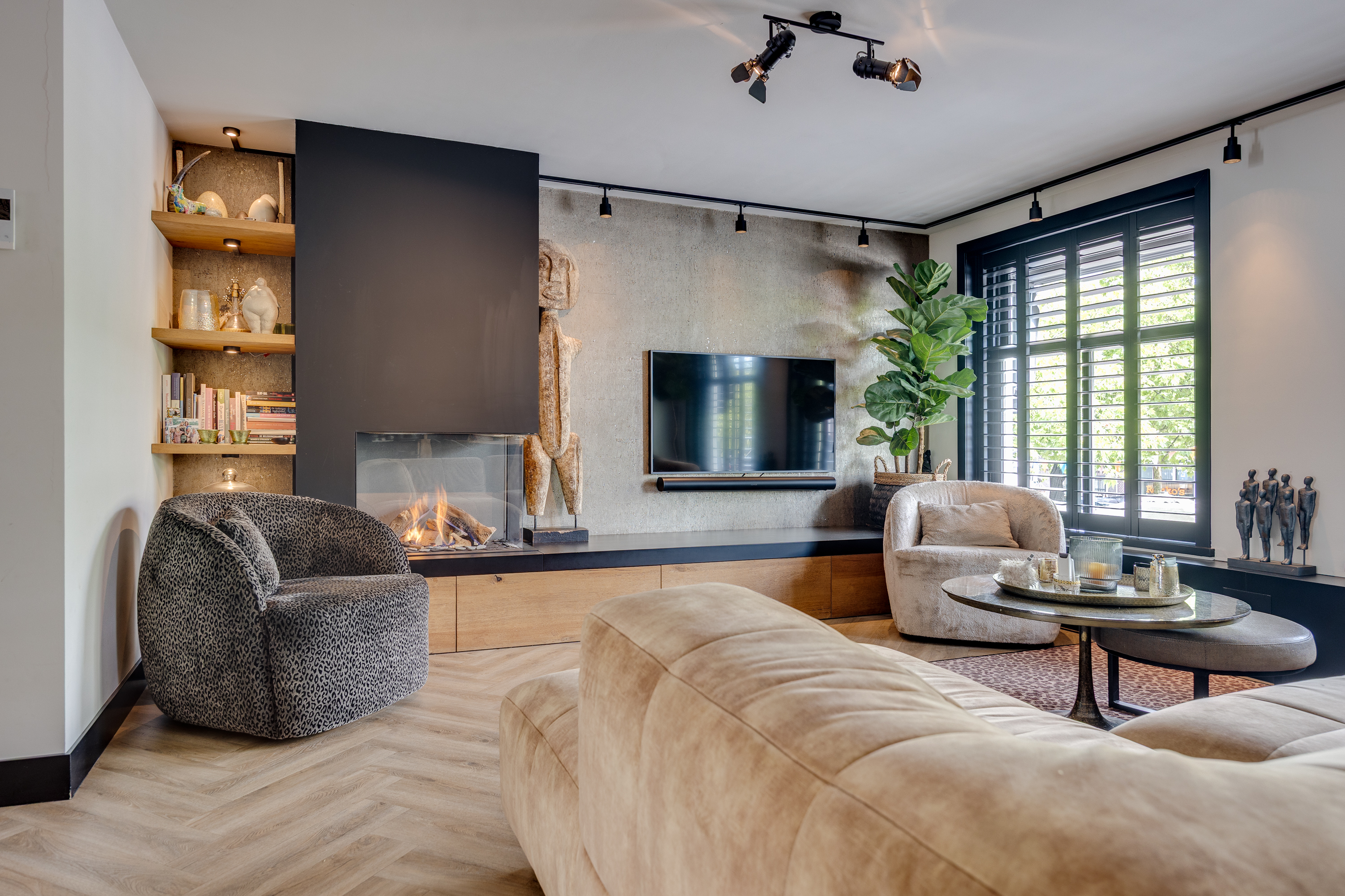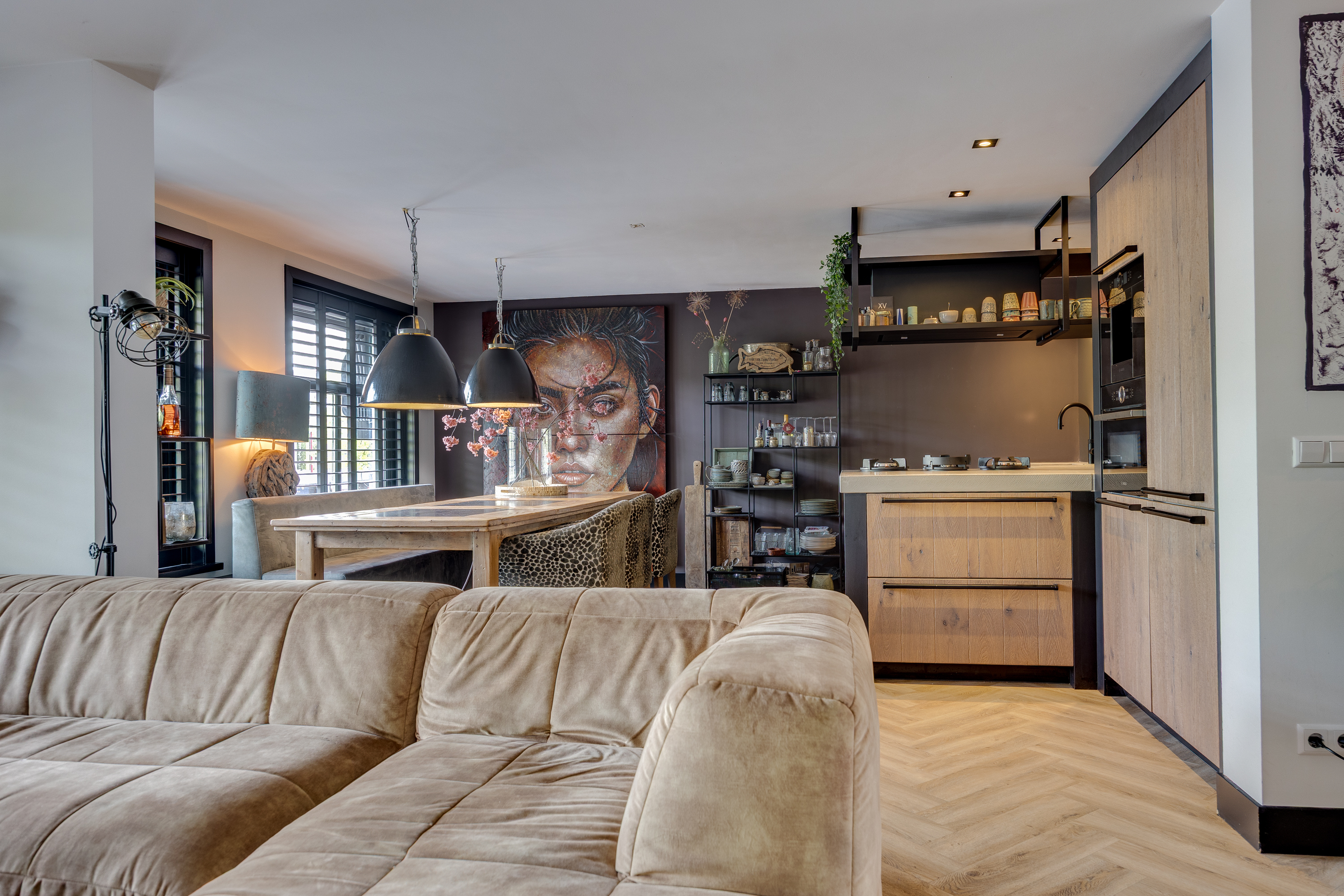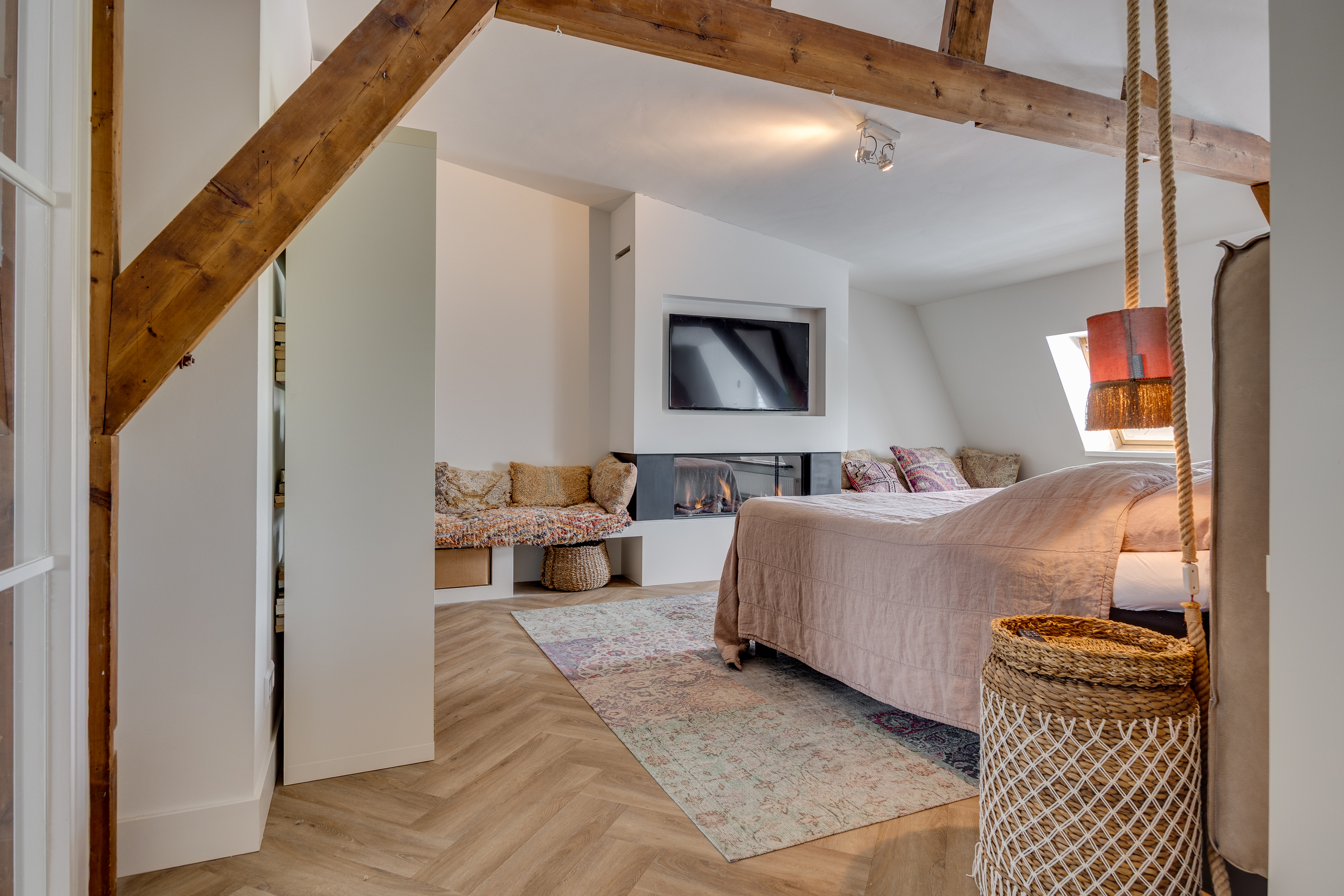The spacious living room at the front is a real eye-catcher, with large windows that provide an abundance of natural light and offer a beautiful view of the lively Kerkbrink. The stylish PVC flooring that runs throughout the entire living area is immediately noticeable. This flooring combines a warm, soothing look with practical features such as durability and ease of maintenance. It forms the perfect basis for any interior. The modern gas fireplace creates a cozy ambiance, ideal for atmospheric evenings. In addition, the air conditioning ensures that the indoor climate remains pleasant throughout the year. Everything about this floor exudes comfort, style, and luxury.