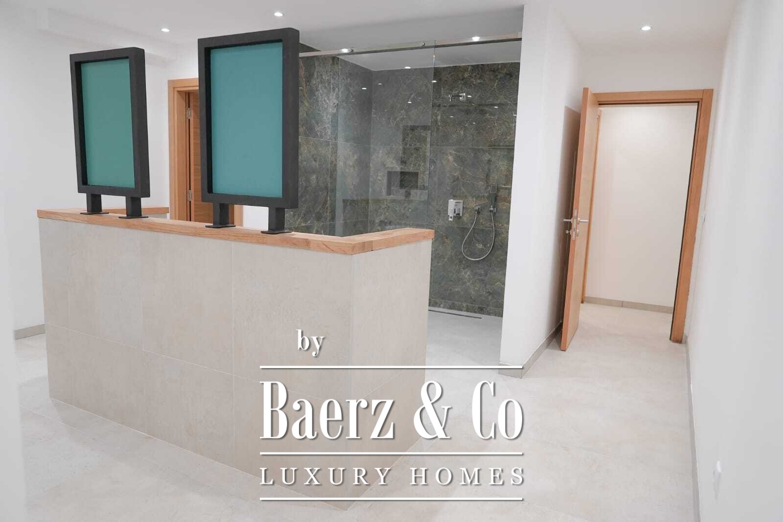 The villa has a panoramic sea view and the view of the mountains that surround it. It is unfurnished with equipped bathrooms and kitchen, finished tiles and equipped air conditioning.
