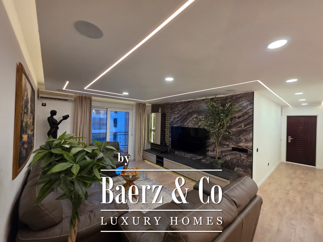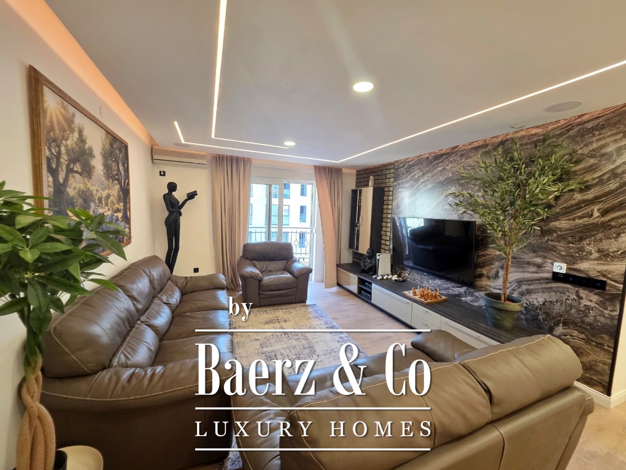 Interior features include lowered ceilings and a surround sound system in the living area. The fully equipped kitchen is ready for use, and the apartment is offered completely furnished, enabling immediate move-in or rental without further investment. Apartment Budva, with its proximity to the sea, restaurants, and shops, presents an excellent opportunity for both long-term living and investment, supported by the area's strong rental demand.