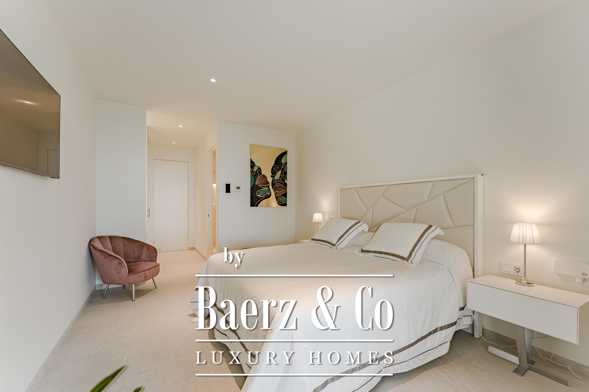 Framed by panoramic ocean views reaching toward La Gomera, the villa’s three levels are illuminated by floor-to-ceiling windows, creating a gentle, sunlit atmosphere. The open plan features four generous bedrooms, five bathrooms, elegant dressing rooms, and multi-purpose living spaces, each detail considered and executed with top-quality materials. Terraces and patios merge indoor and outdoor rhythms, while the infinity pool extends toward the horizon for unobstructed relaxation.