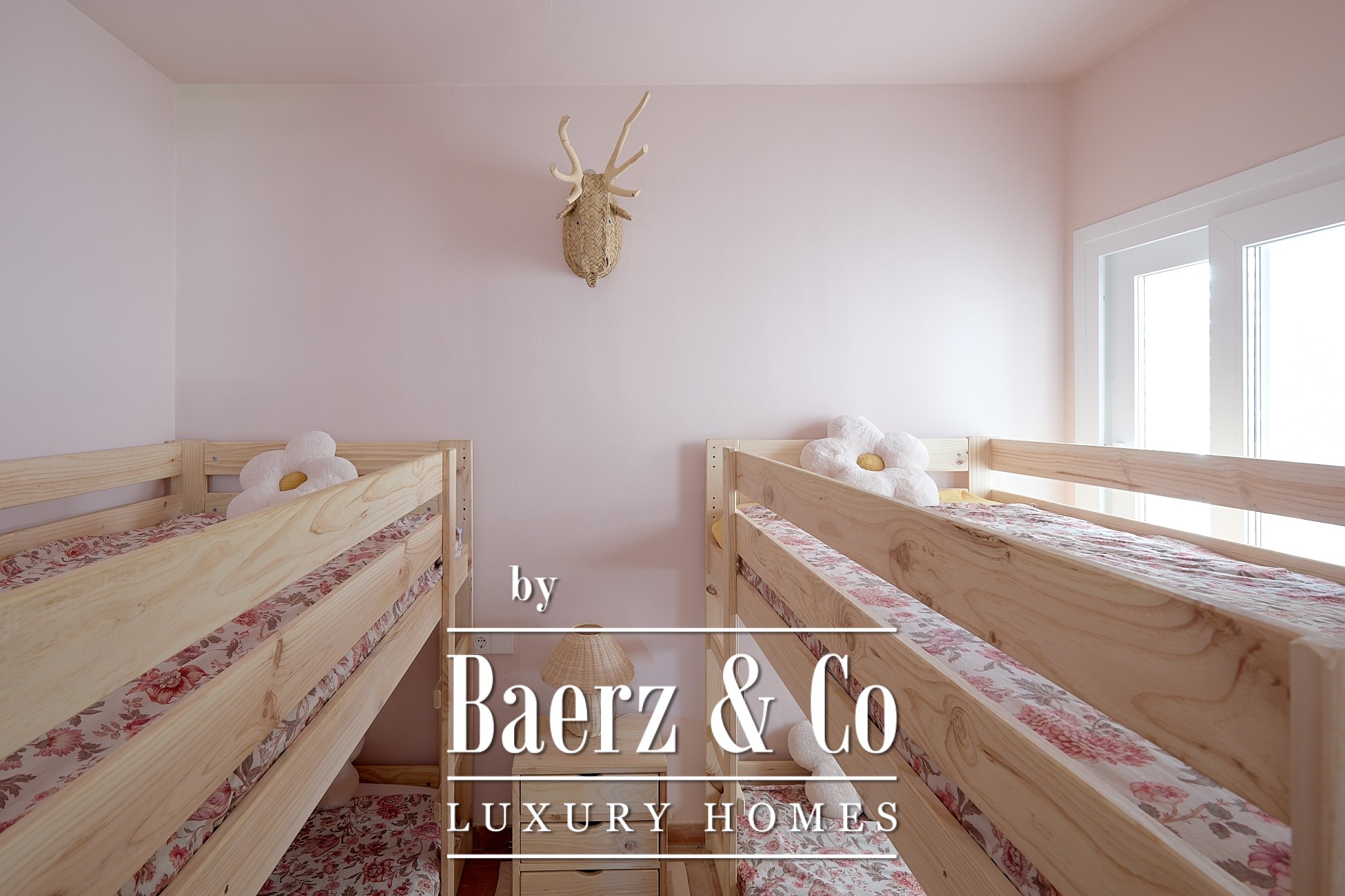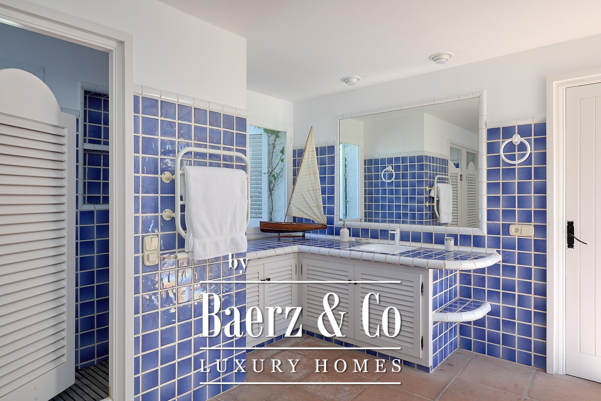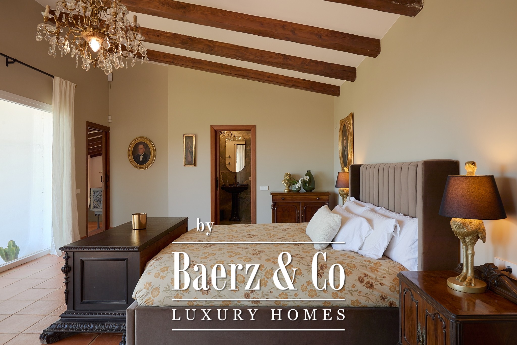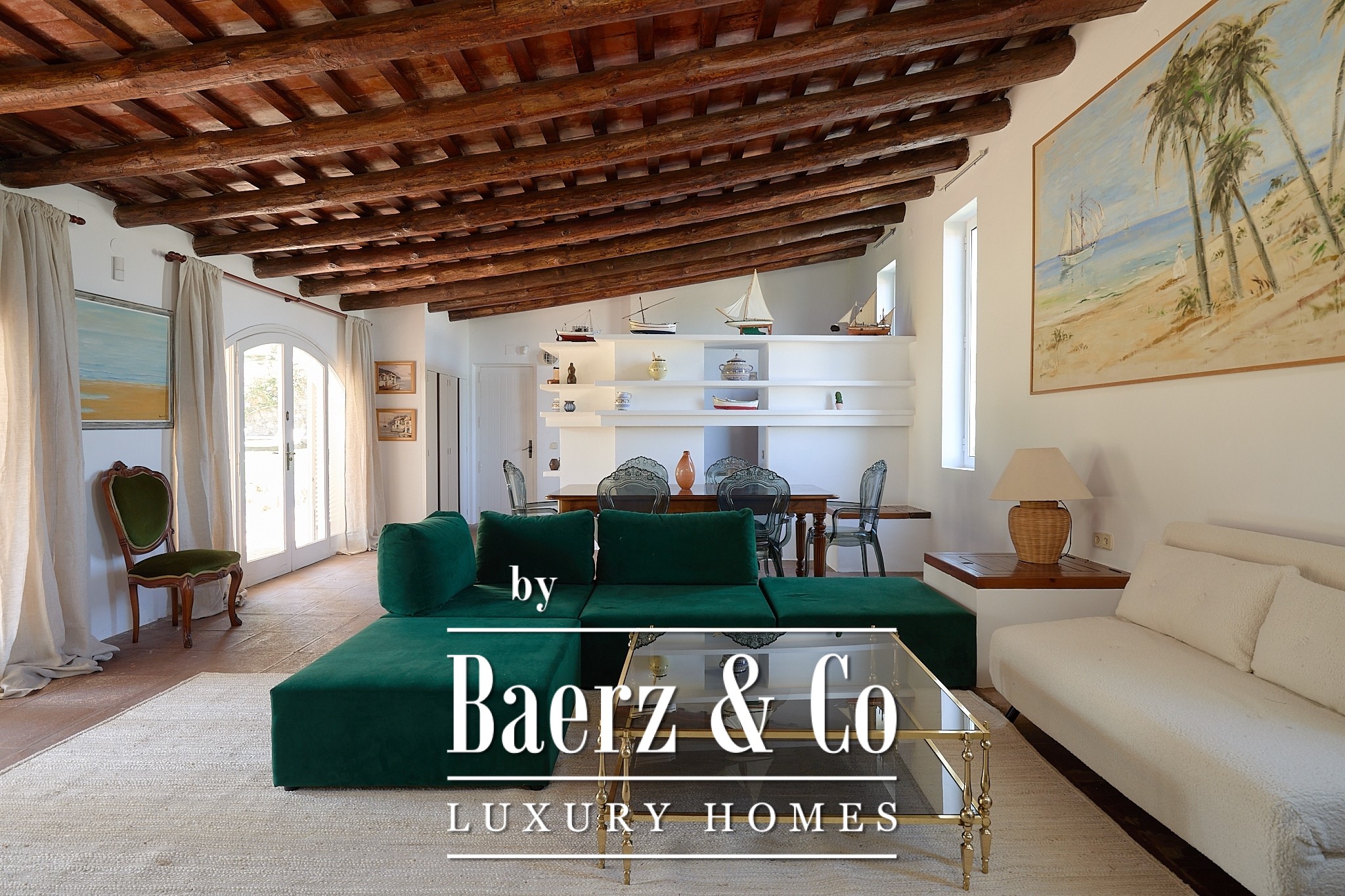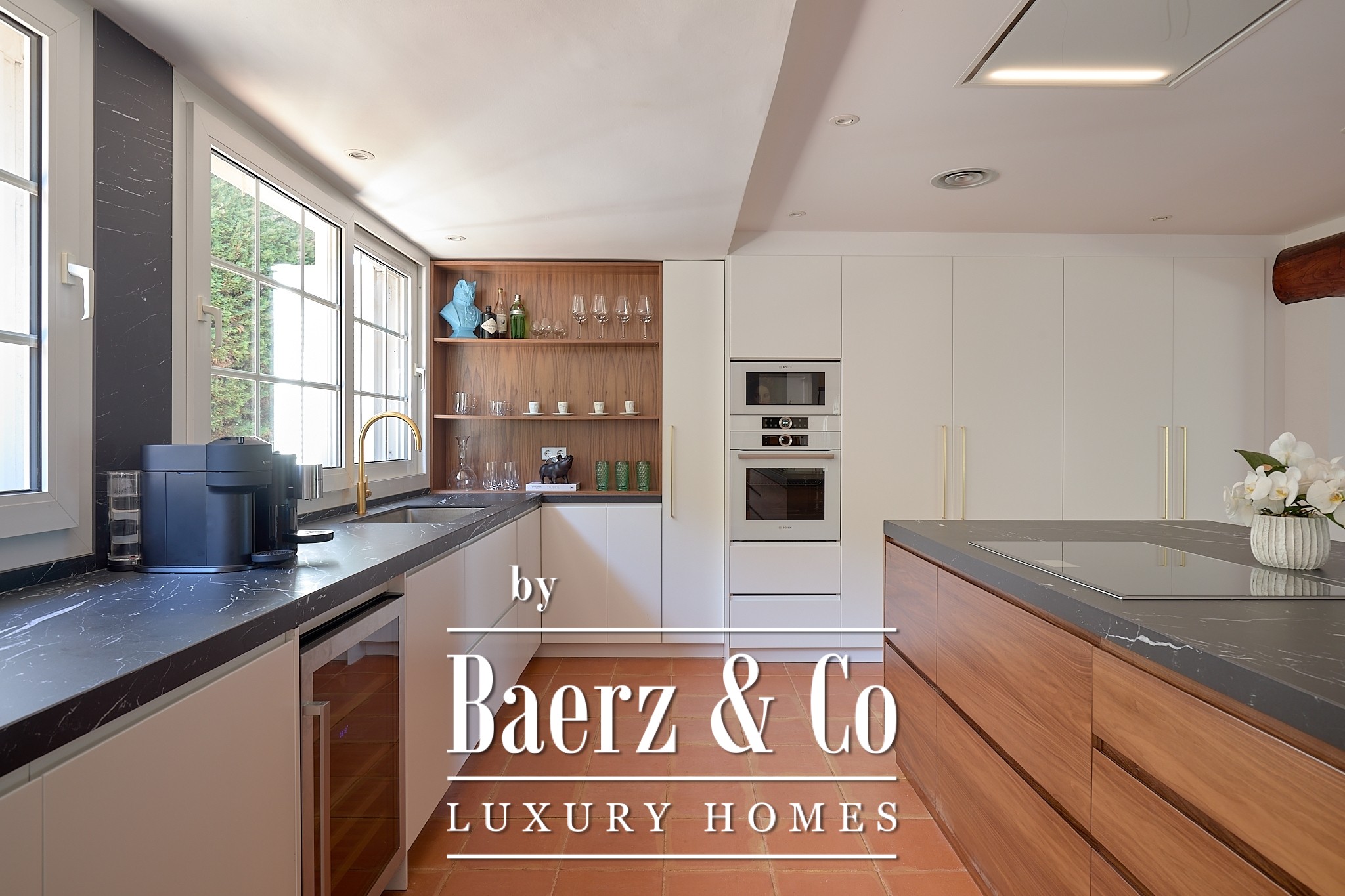 A separate loft-style guest house provides guests with complete autonomy, including its own kitchen and bathroom. Outside, a new swimming pool, solarium, landscaped gardens, and a covered dining and barbecue area evoke authentic Mediterranean retreat. A large private garage accentuates practical luxury.