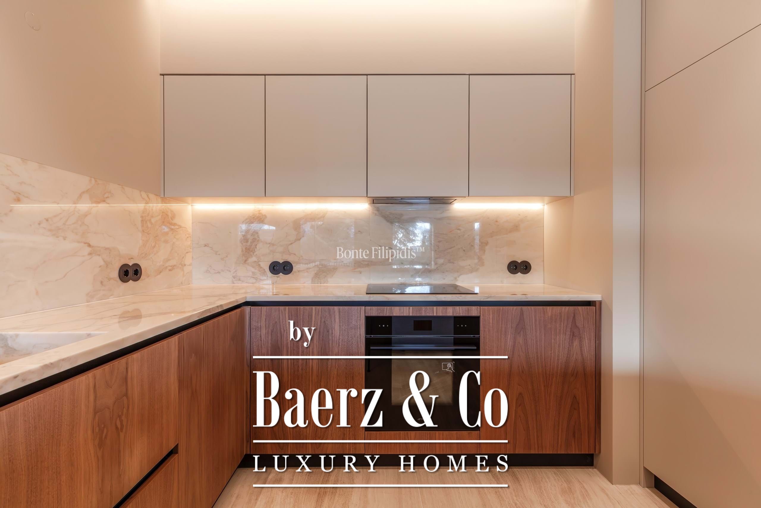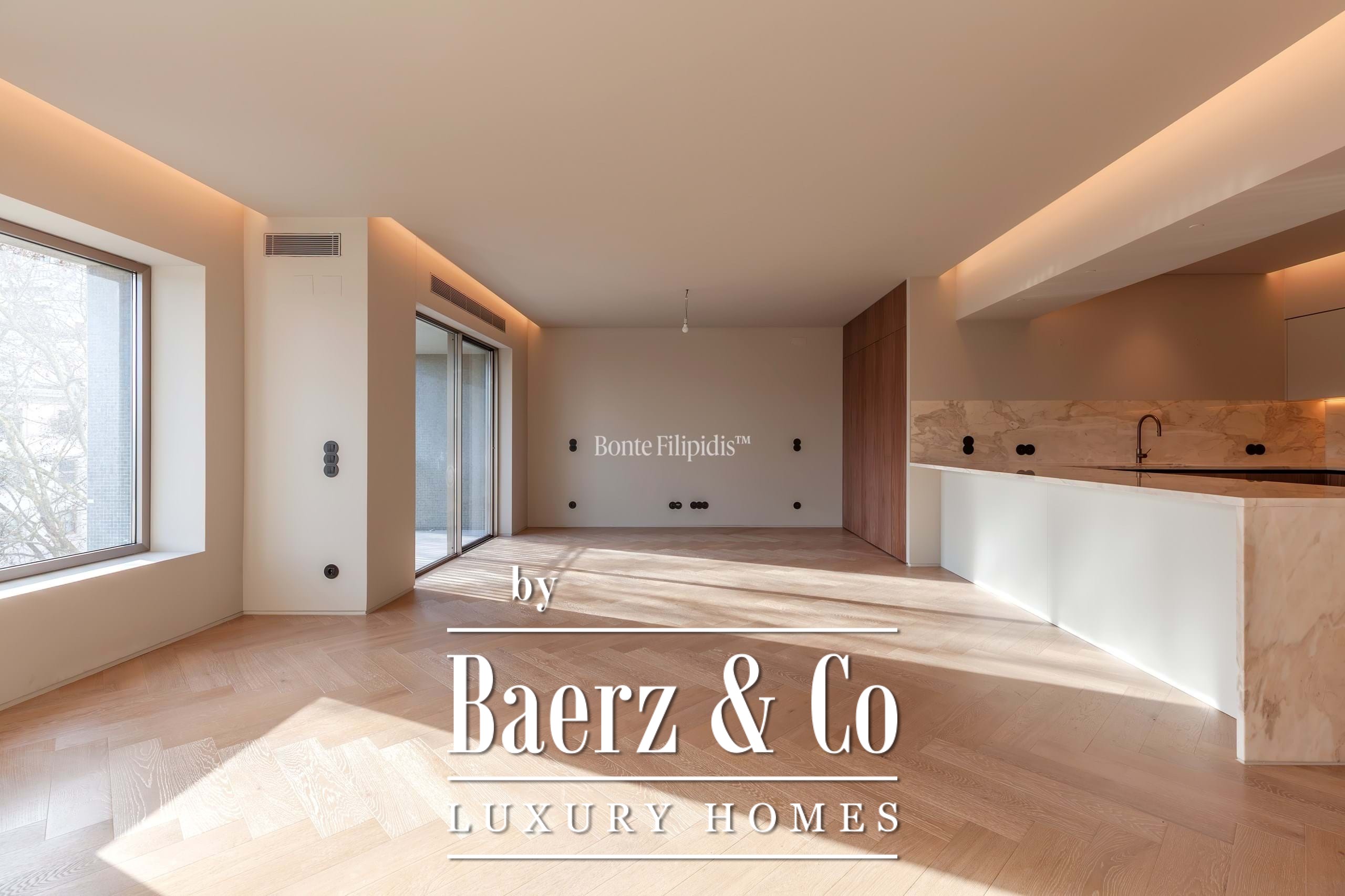 A comprehensive renovation has elevated every space, featuring high-quality materials and subtle, contemporary finishes. The versatile layout is thoughtfully designed to maximize natural light, centering on a remarkable 47 m² living room with extraordinary sun exposure and a balcony that frames river, garden, and city views. The adjacent kitchen of 15.4 m², equipped with Smeg appliances, seamlessly integrates with the social area to create an open-plan rhythm ideal for both privacy and hospitality.