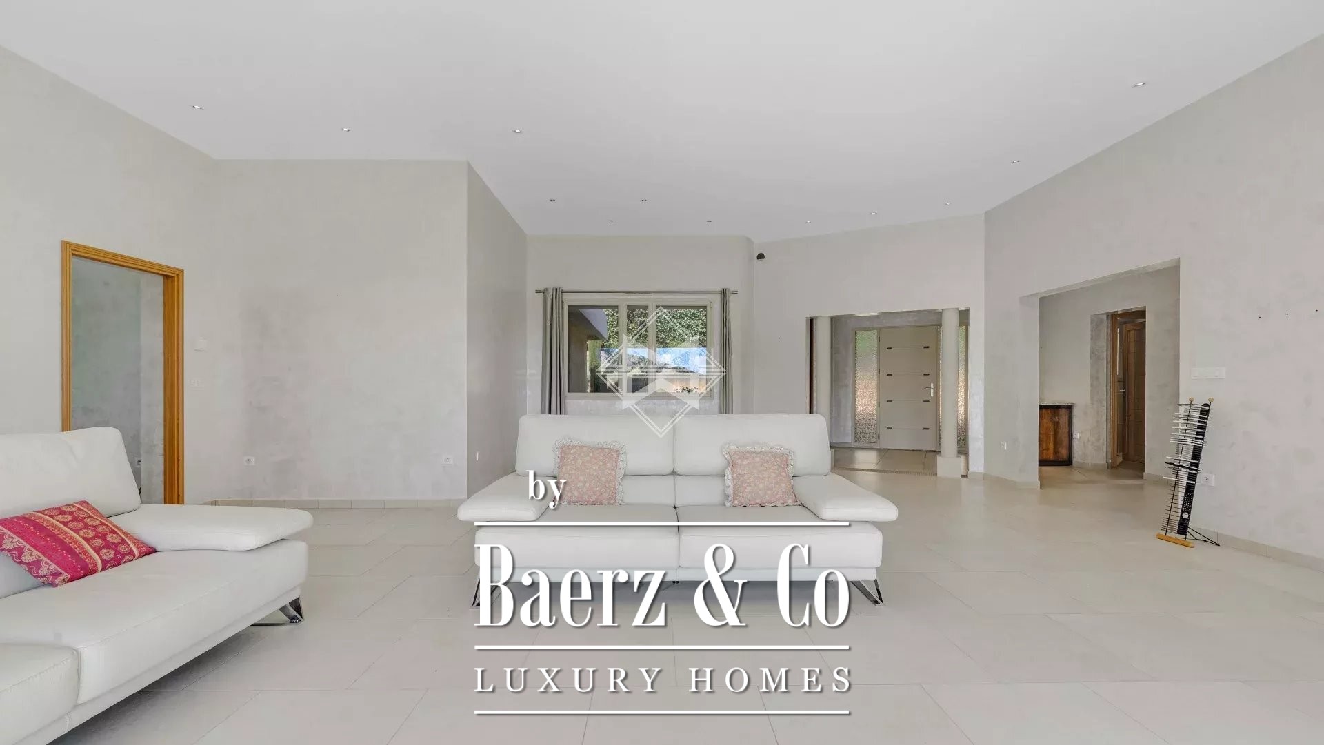 Villa Cavalaire-sur-Mer is set in a discreet and privileged enclave, offering an understated synthesis of architectural clarity and Mediterranean light. An architect-designed residence built in 2013, the villa occupies a level plot of 1,600m² within a secure gated estate, close to the beach yet set apart for privacy. Its 300m² of interior space capture sweeping vistas over the hills and glimpses of the sea, embraced by luminous volumes and soaring ceilings in the main living and dining areas.