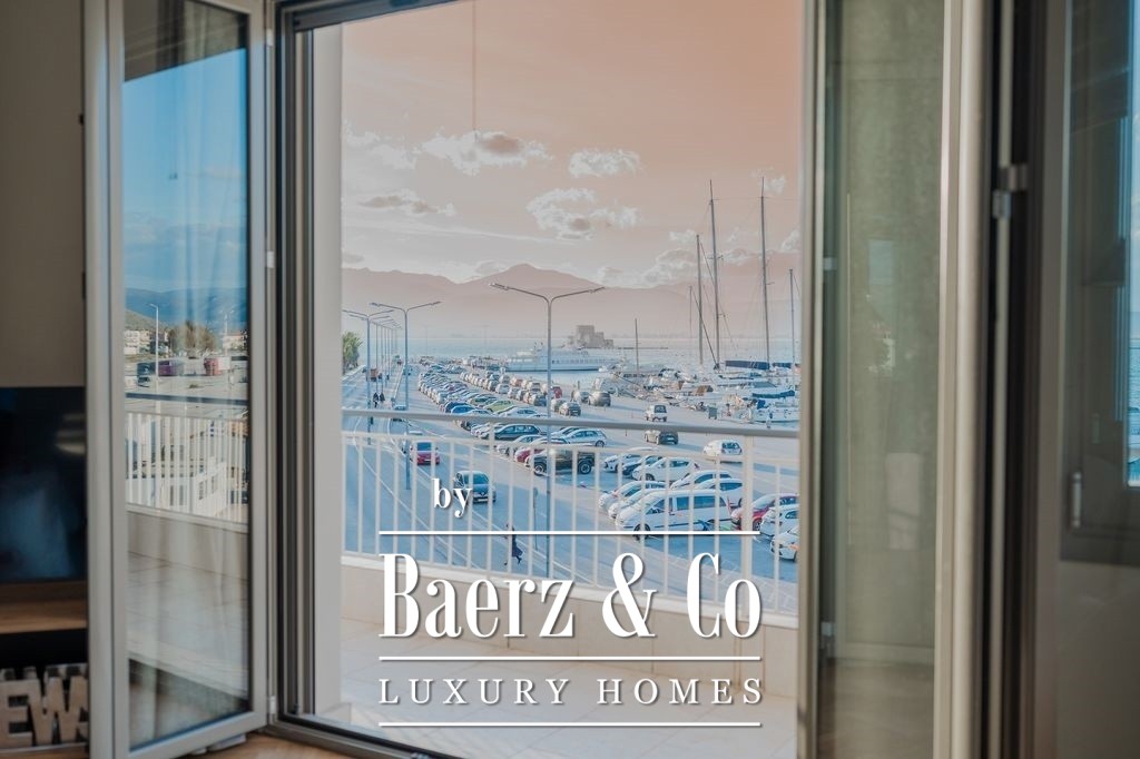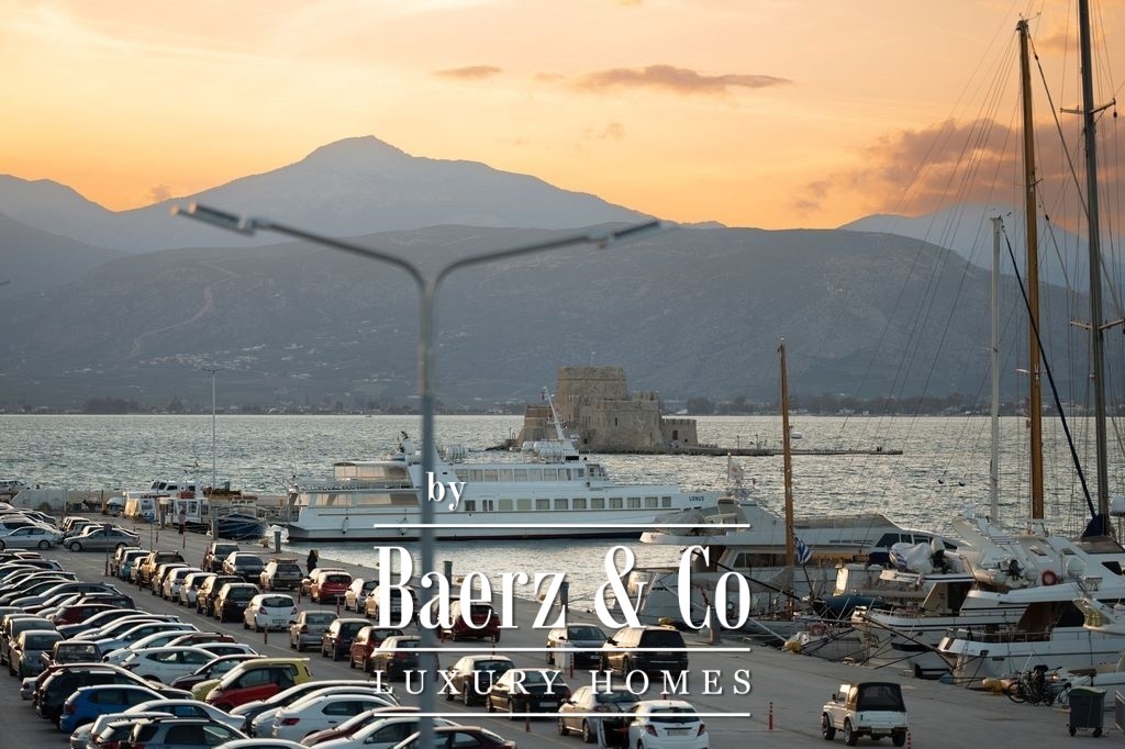 Apartment Nafplio Center presents a rare opportunity to own a 137 m² residence positioned just steps from Nafplio’s storied Old Town. This apartment stands in a league of its own, commanding direct and uninterrupted sea views over the harbor, luxury yachts, and the legendary Bourtzi Castle. From the first moment, the rhythm of harbor life and the endless blue horizon define both the interior and experience of this home.