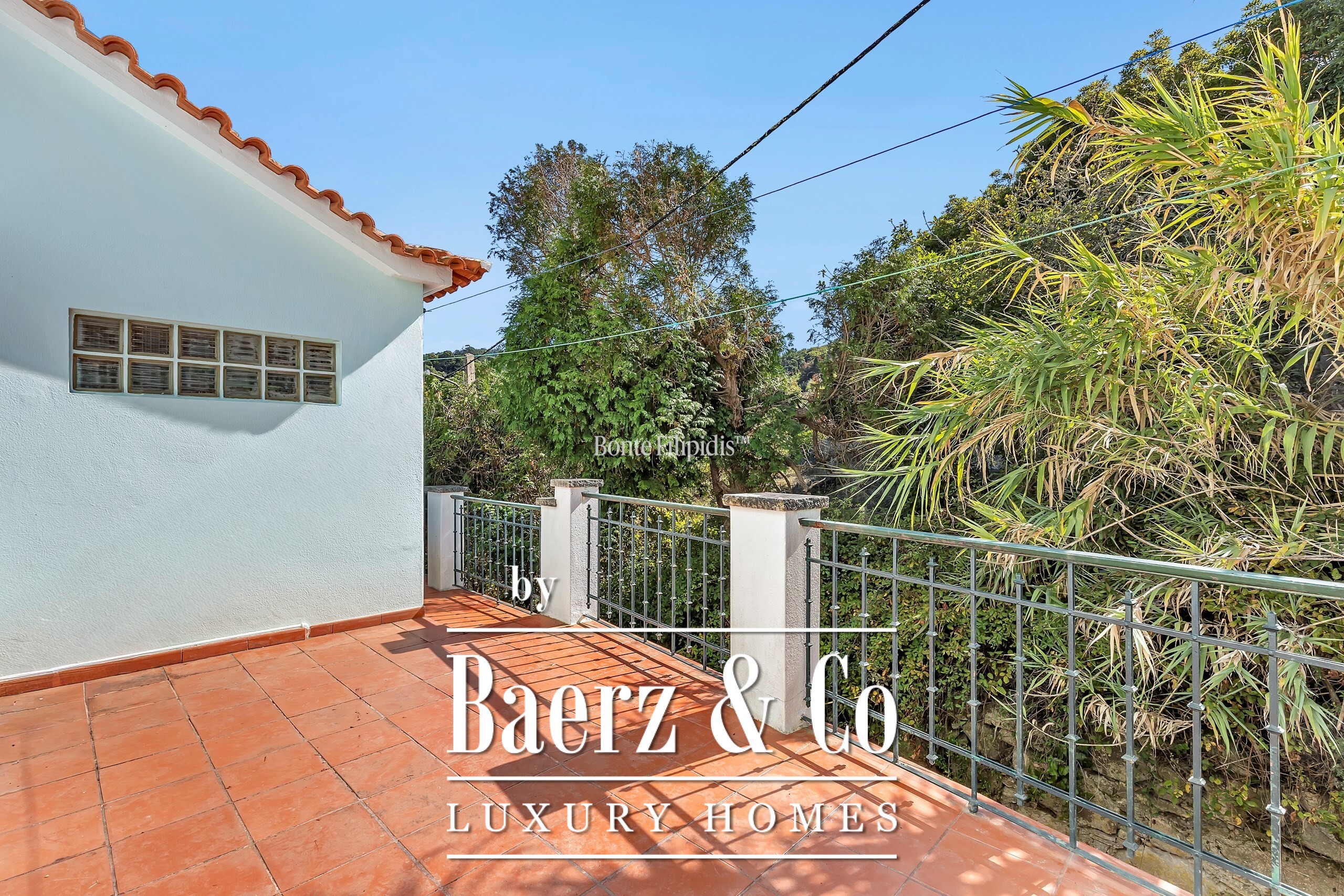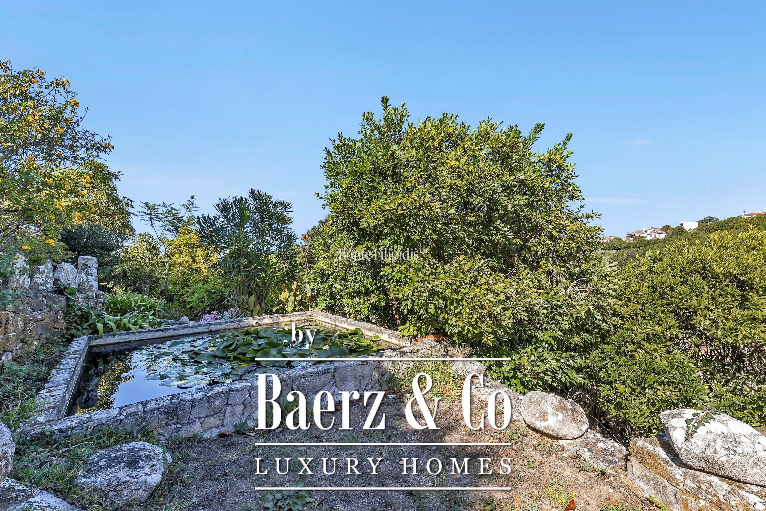 In excellent condition, the property enjoys a tranquil setting with panoramic views over the Sintra Mountains and the Atlantic Ocean, creating a unique atmosphere of well-being and privacy.