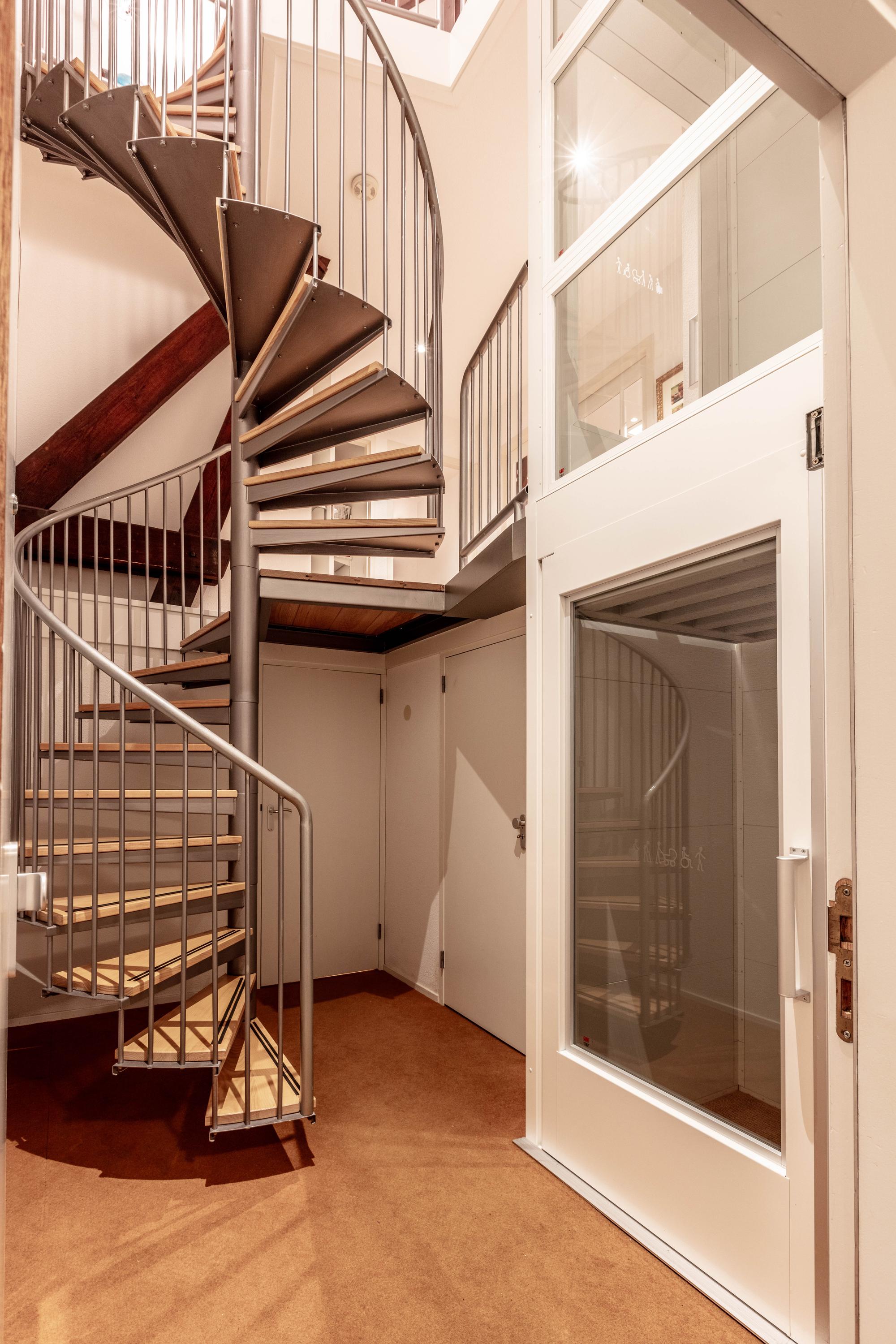 Apartment Delft with lift offers a rare opportunity to reside in a striking heritage setting within the city centre. Set in the former TU-library, this duplex top floor residence blends monumentality and modern living across 193 m². The apartment is accessed by a private lift, offering comfort for every stage of life.
