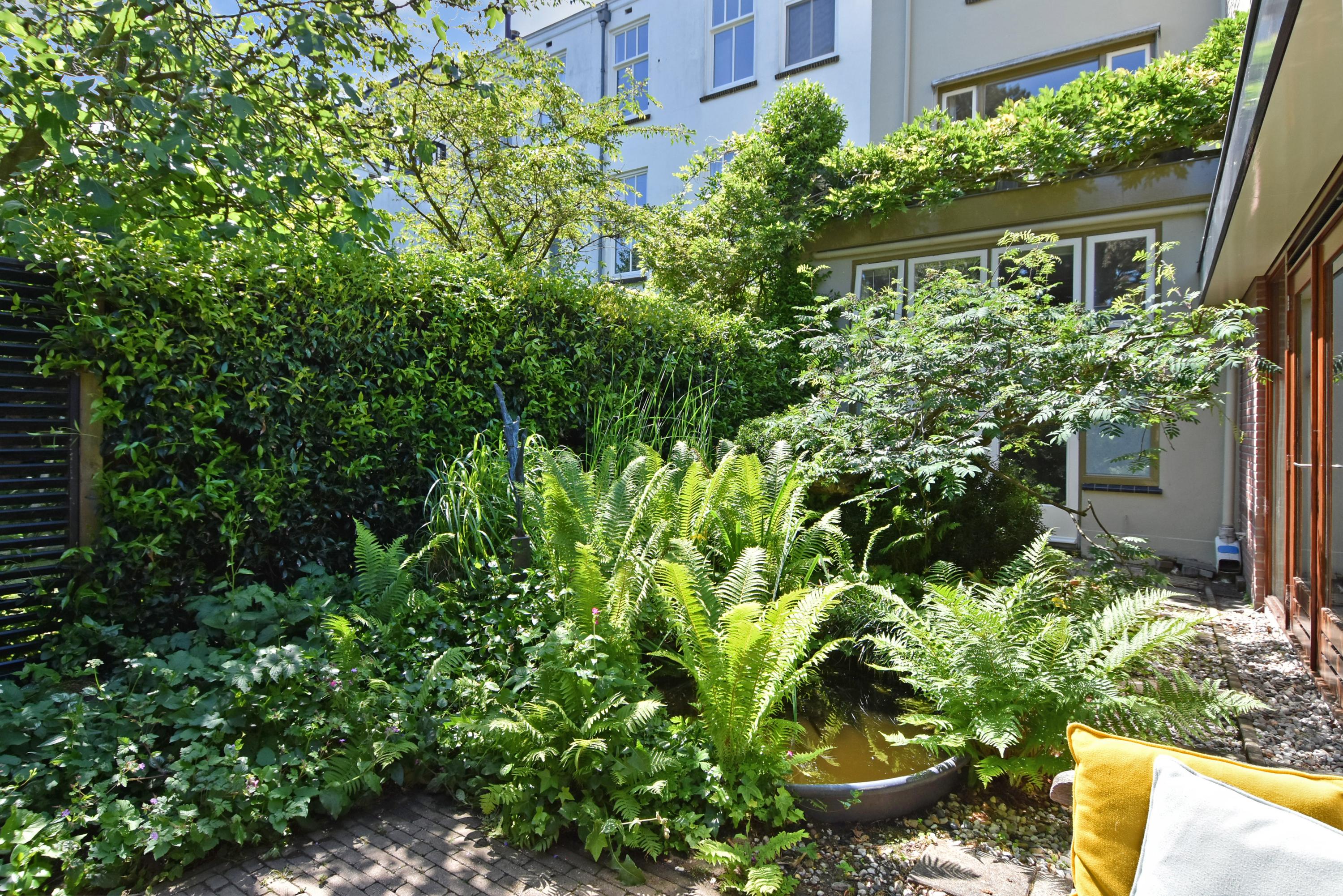 - Beautifully landscaped garden with several terraces and a pond.