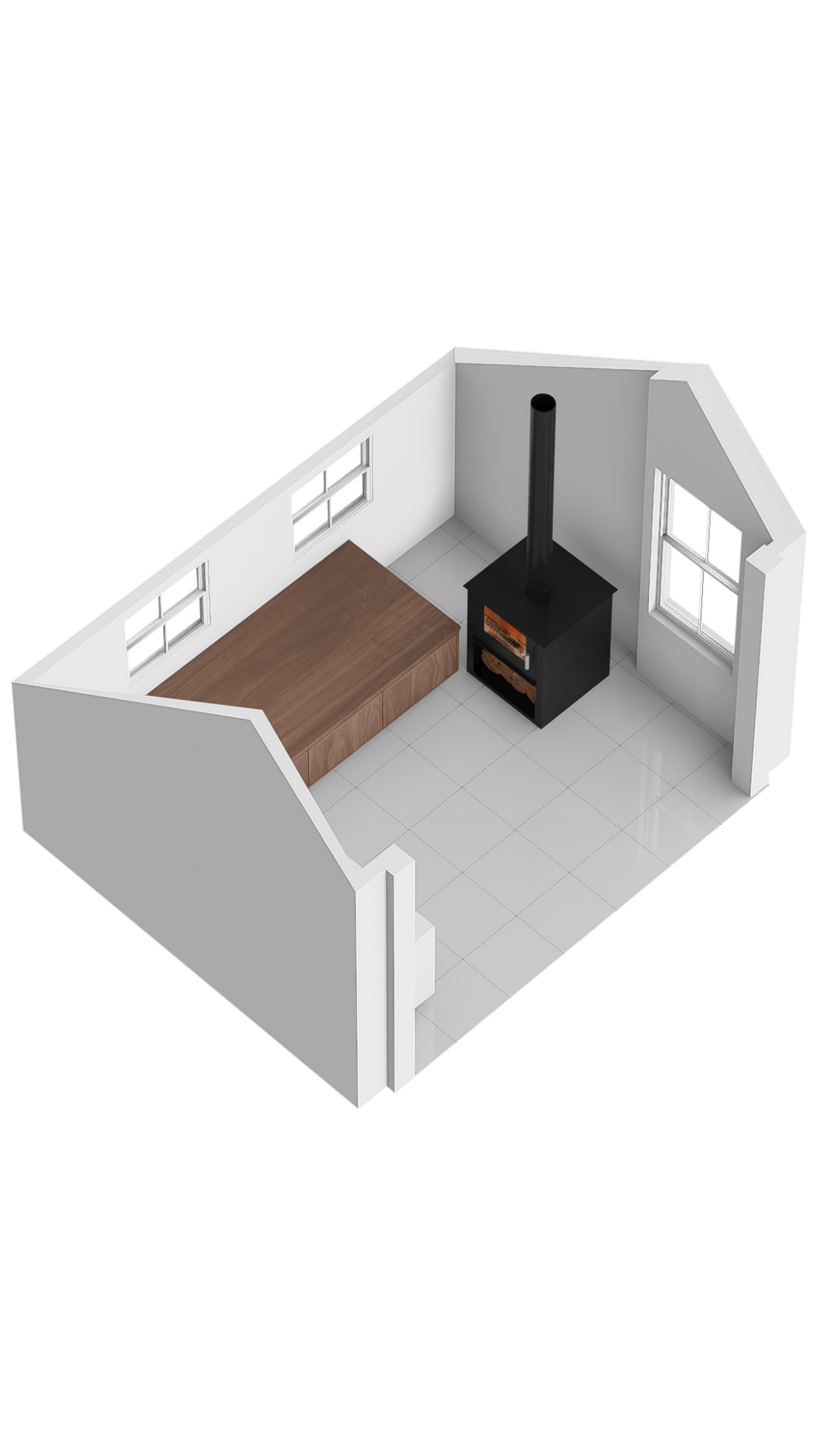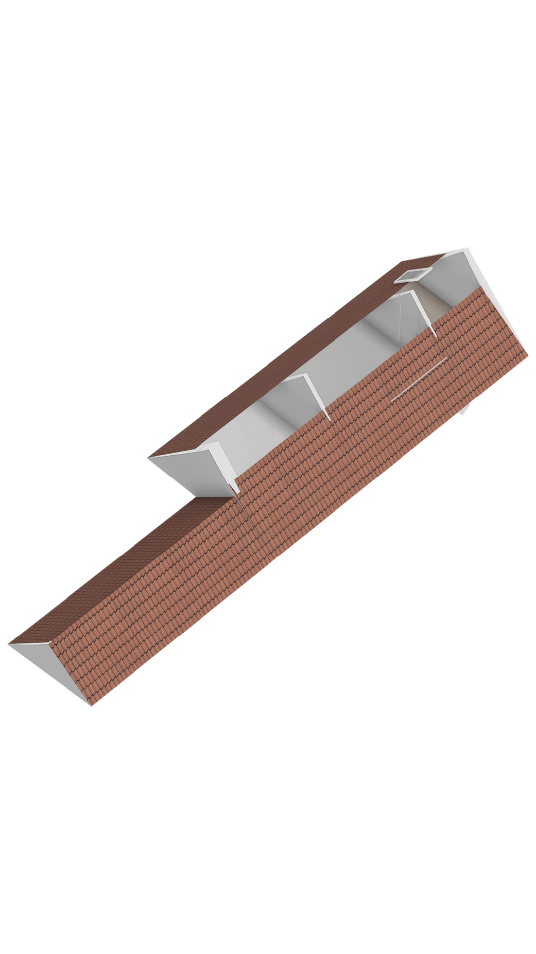 The staircase from the living room leads to a bright landing with skylights, currently used as a comfortable home office. From here, two spacious bedrooms are accessible. The front bedroom features built-in wardrobes, two traditional sleeping alcoves, a washbasin and access to a storage loft. The rear bedroom also has built-in wardrobes, a sleeping alcove, a washbasin and a third toilet. An additional adjoining room is ideal as a playroom or extra storage. A fixed staircase leads to the spacious attic, offering ample storage.