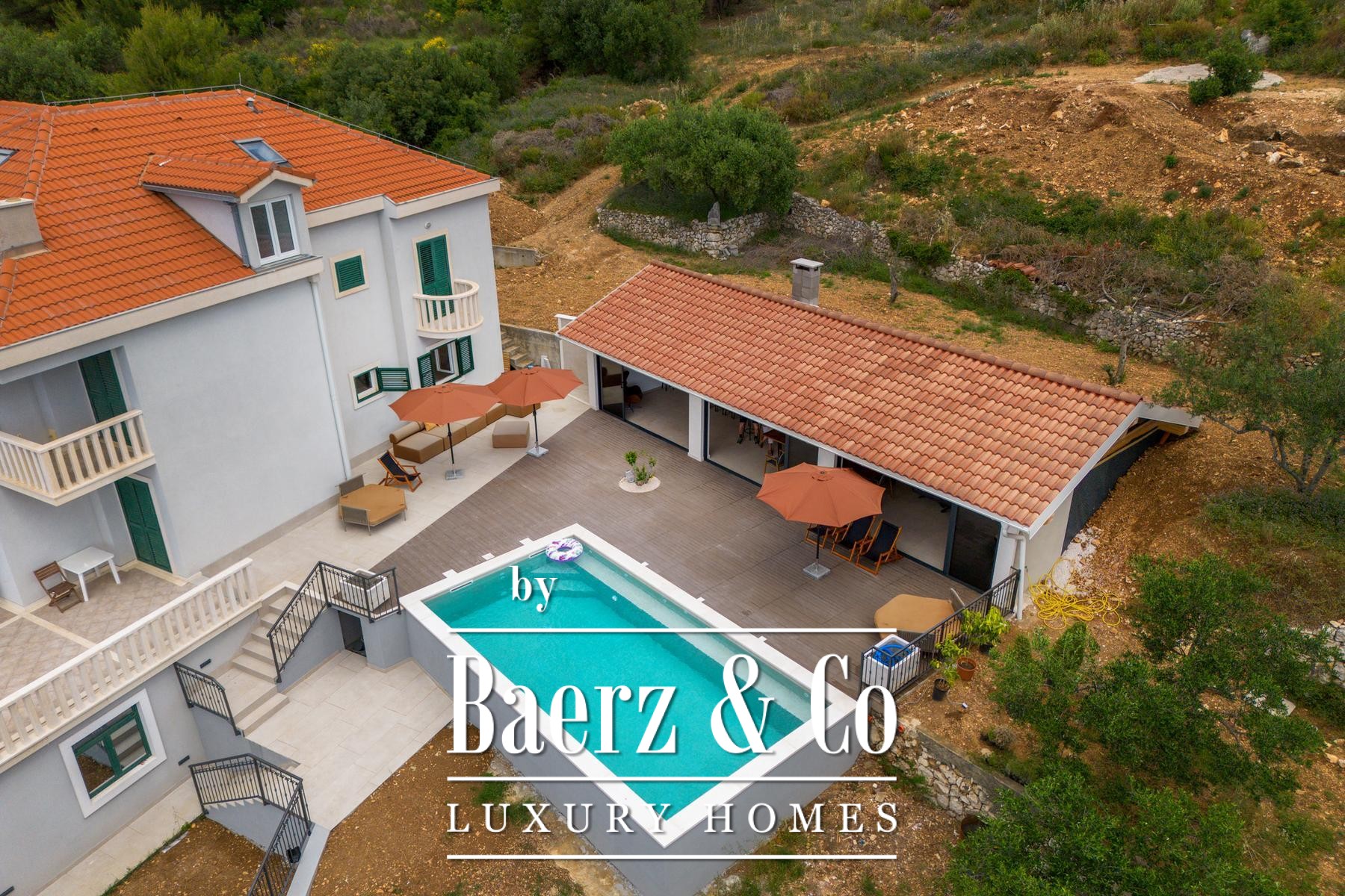 Villa Jesenice is a rare offering in Croatia, blending architectural functionality with Mediterranean serenity. This property spans 400 m² of living space on a 1,200 m² plot, presenting open views of the sea from a quiet, coveted location. Surrounded by mature landscaping, the villa offers complete privacy and a refined setting designed for both relaxation and entertaining.