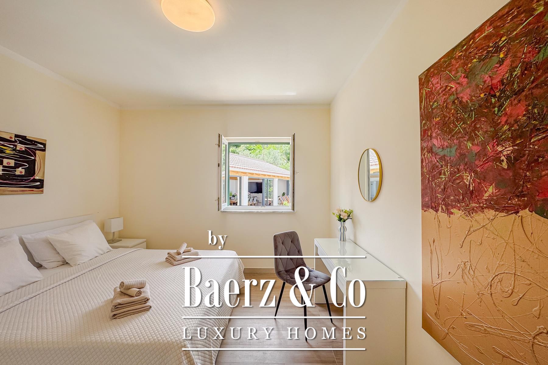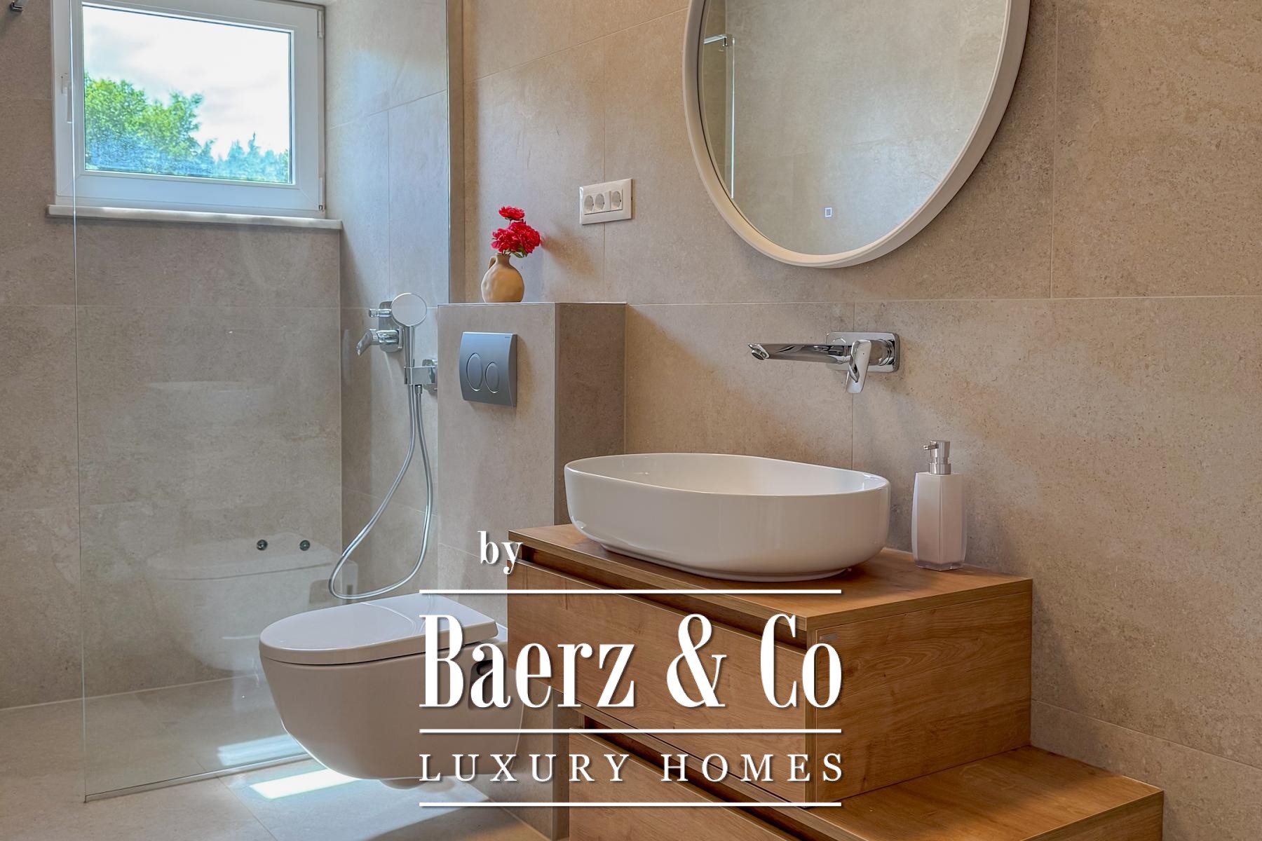 Inside, Villa Jesenice is elegantly arranged across two floors and a gallery, drawing generous natural light into its spaces. The home features five spacious bedrooms and five modern bathrooms, alongside a cohesive living, kitchen, and dining area tailored for comfort and sociable gatherings.