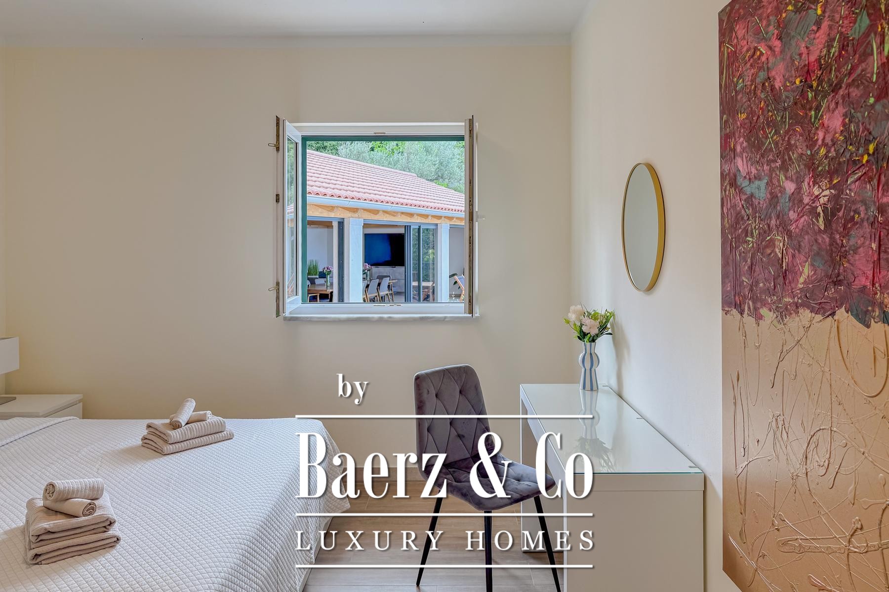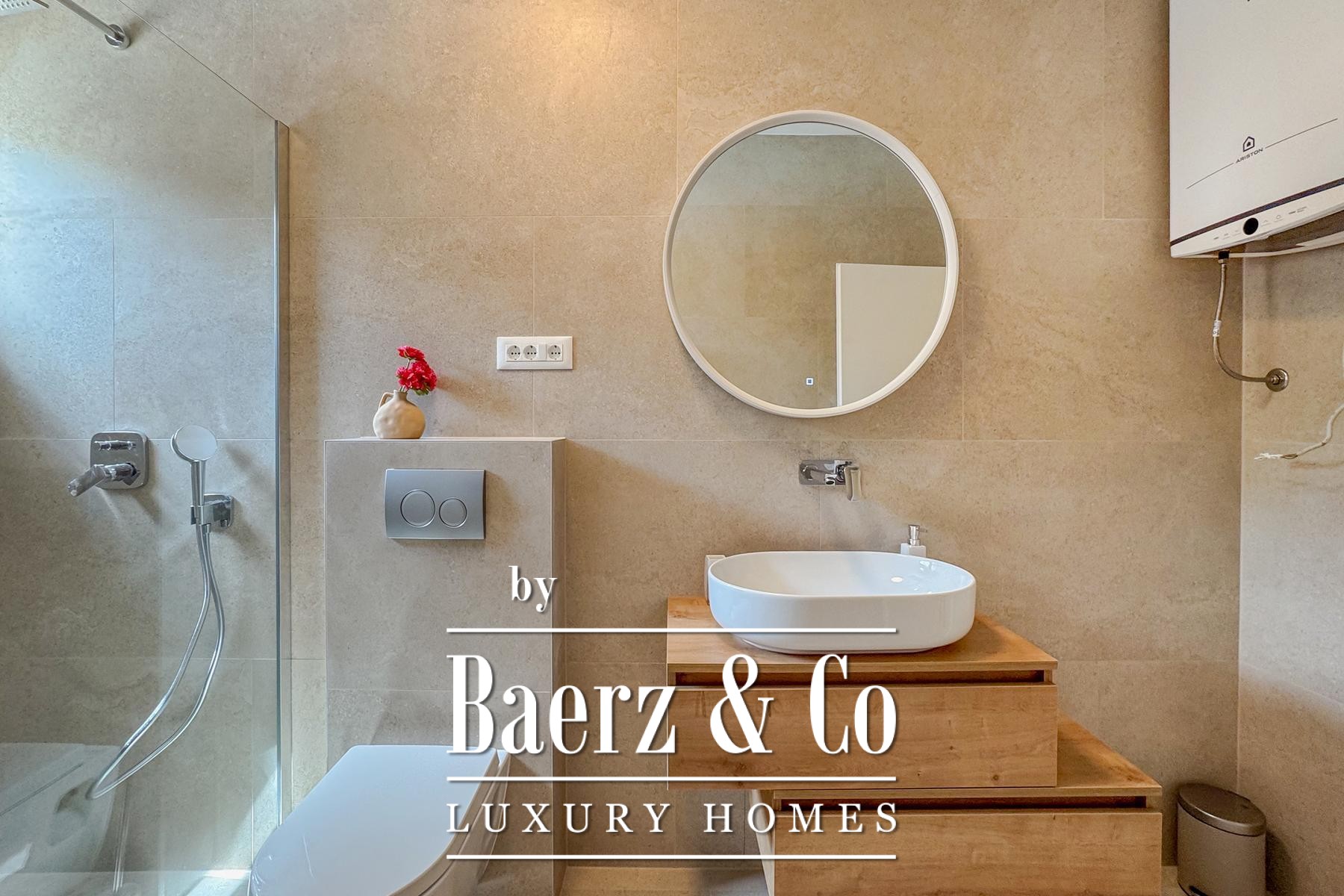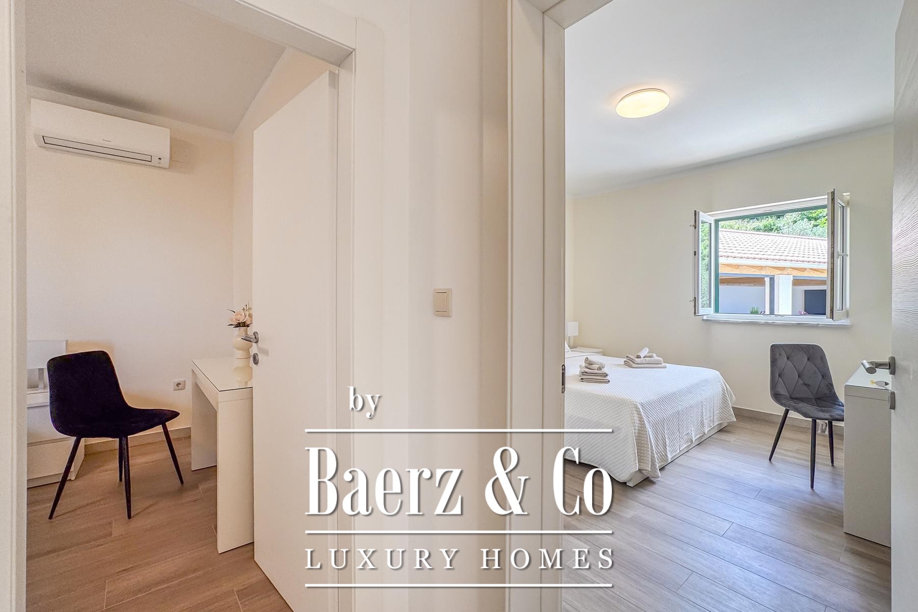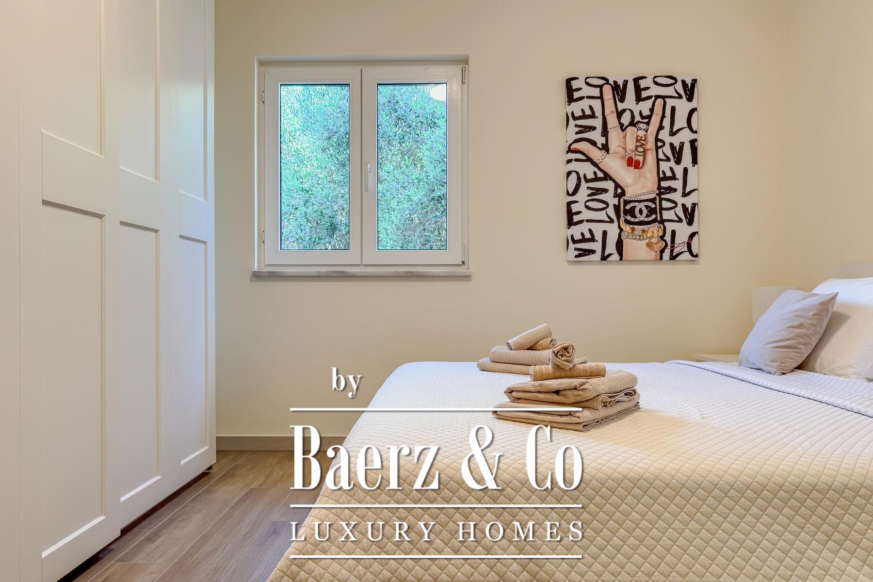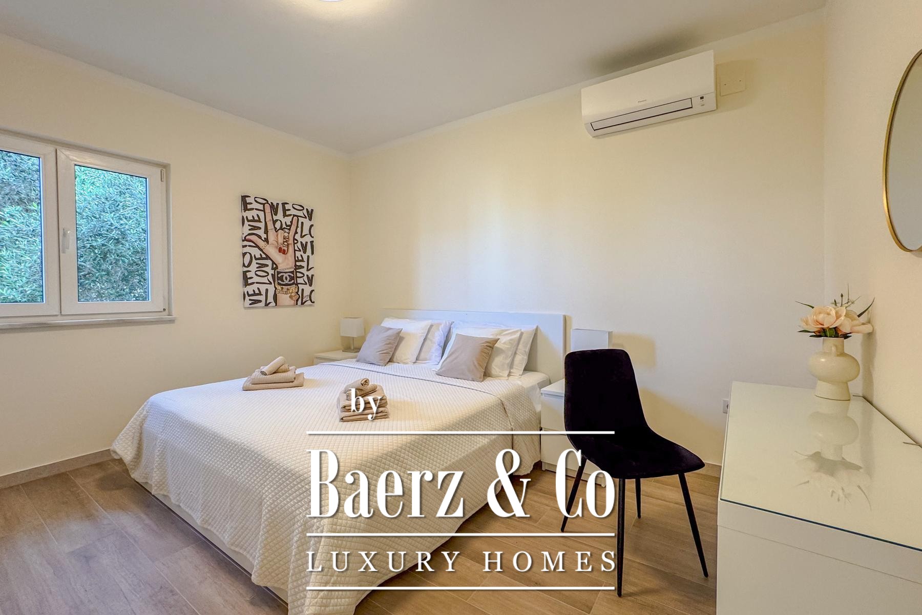 The outdoor environment enriches the experience, with a landscaped garden, a large swimming pool, sunbathing area, and an 85 m² summer kitchen for al fresco living. Additional amenities such as a 40 m² garage and a 22 m² storage room offer practical comfort. This villa’s proximity to the sea and essential amenities completes its appeal, positioning it as an outstanding private residence or investment in the Mediterranean.