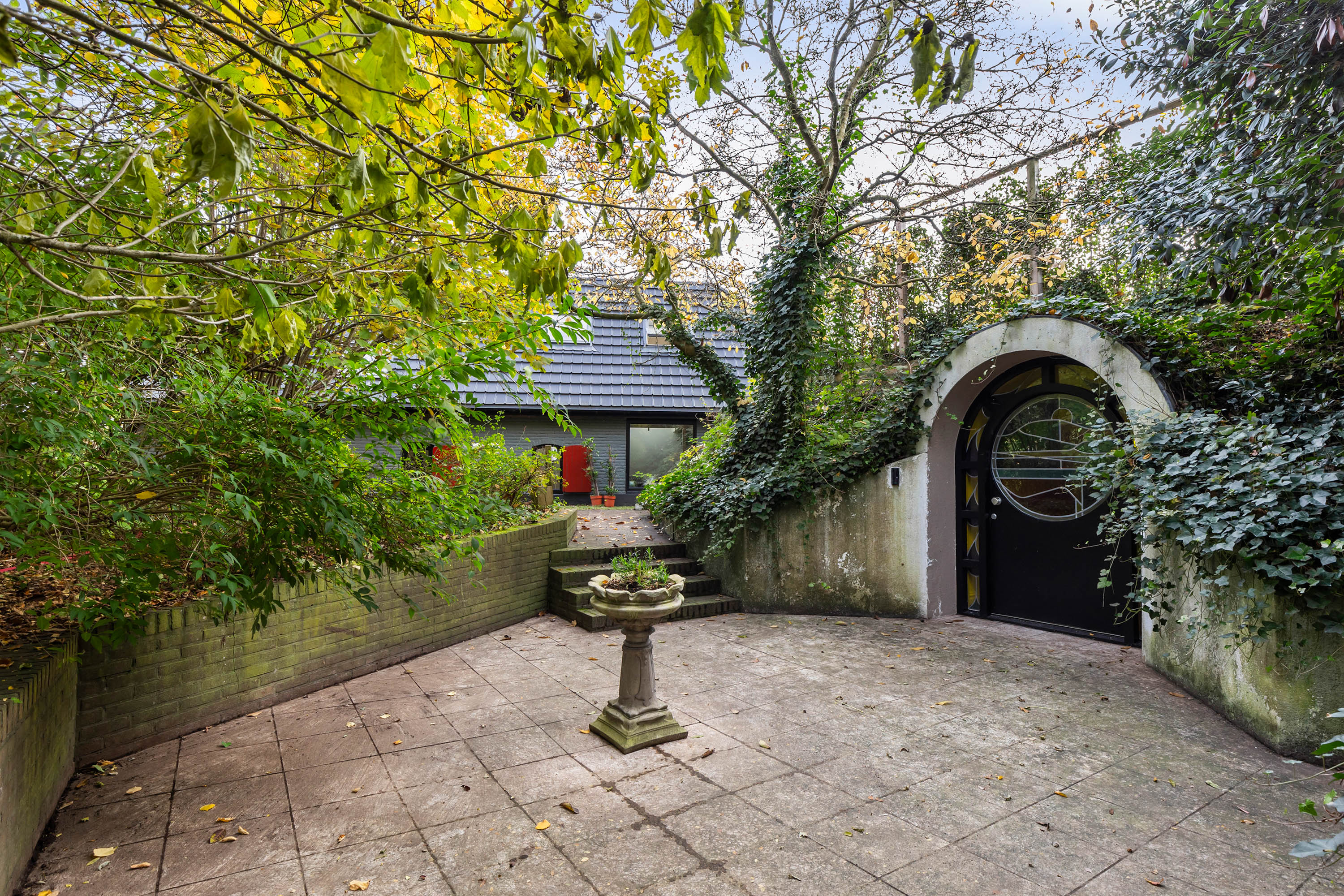 The exterior has been fully repainted, fitted with new roofing, and enclosed by a bespoke corten steel boundary with glass panels referencing the striking tulip artwork in the front garden. All windows have been upgraded with insulating glazing, and the interior has been redesigned into a hotel-chic living environment with warm tones, high-quality bespoke joinery and atmospheric lighting. The property is equipped with a comprehensive camera system and alarm installation both in and around the buildings.