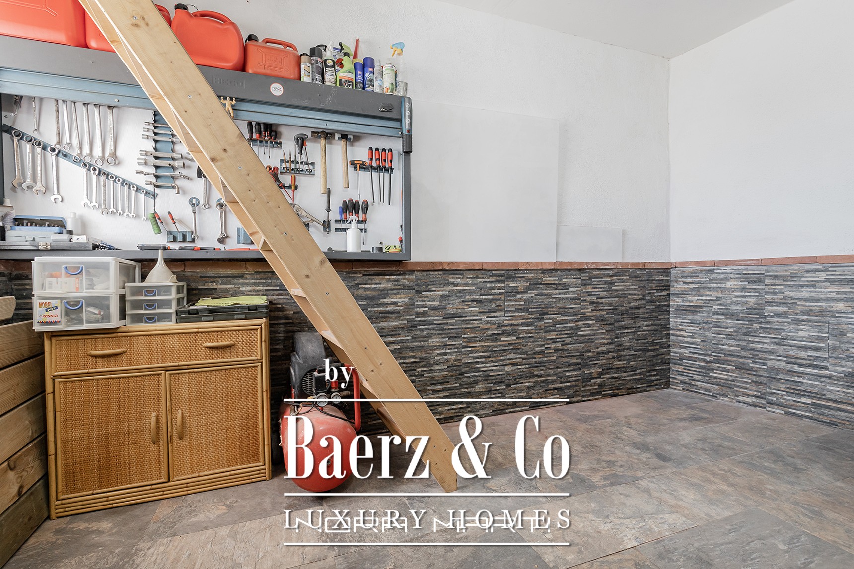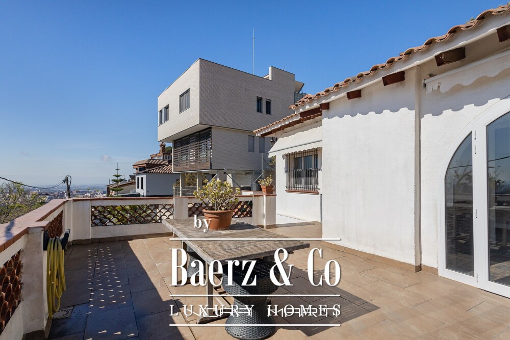 This house Esplugues de Llobregat stands within the La Miranda district, set on a 900 m² plot that ensures privacy and sweeping views over the surroundings. The residence presents a rare architectural profile and spacious south-facing grounds, offering both tranquility and an elevated sense of space. Across 123 m² of living space arranged over two levels, the current layout includes three bedrooms and two bathrooms. The upper floor houses the main residence, while the lower level accommodates parking for one vehicle, with both levels connected by elevator for ease of movement.
