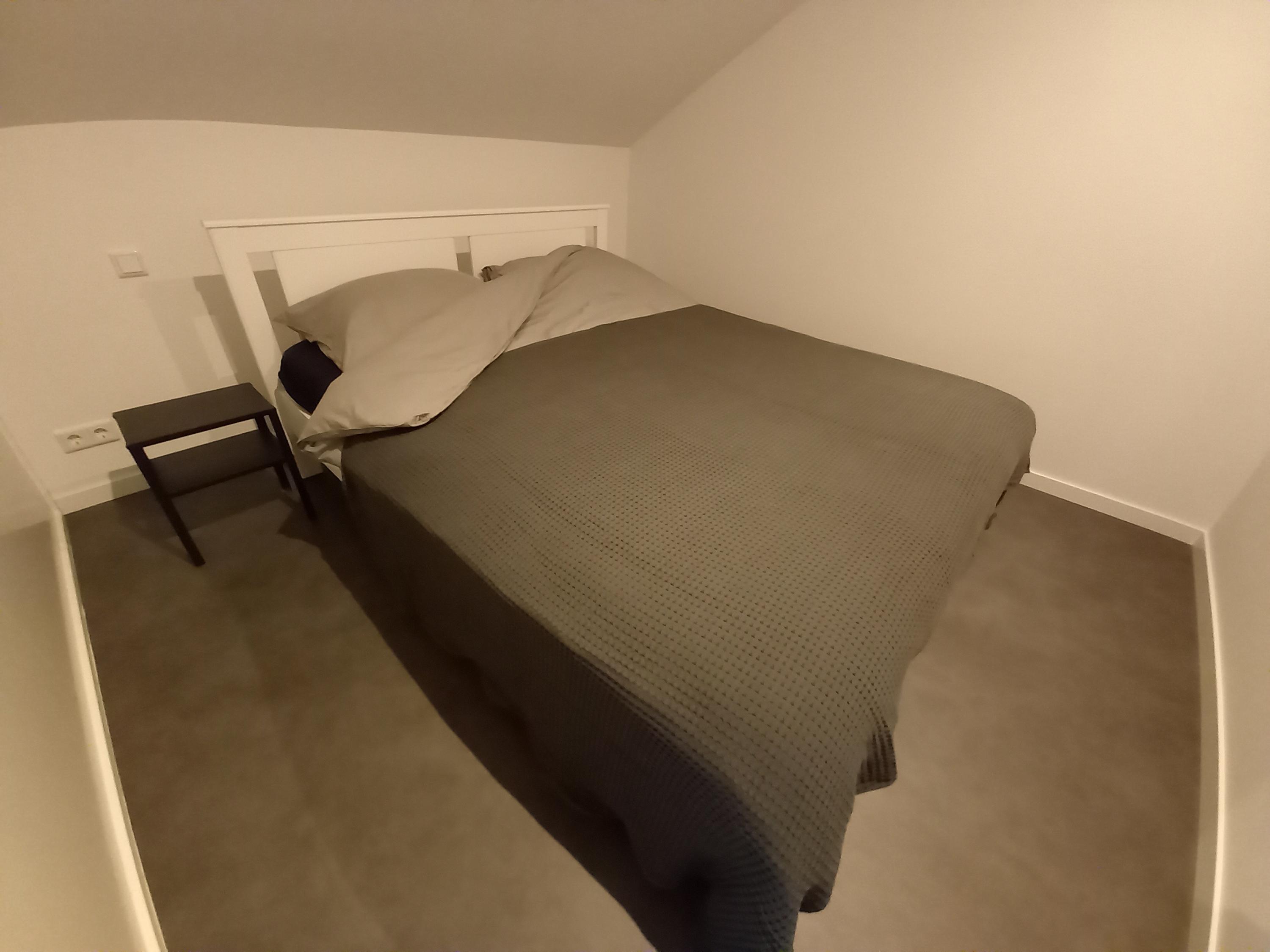 Master bedroom (approx. 4.55 x 3.00 m) with large wardrobe. This room also contains the meter cupboard (8 circuits + 3-phase power + earth leakage switch). The floor is fitted with stylish dark laminate.
