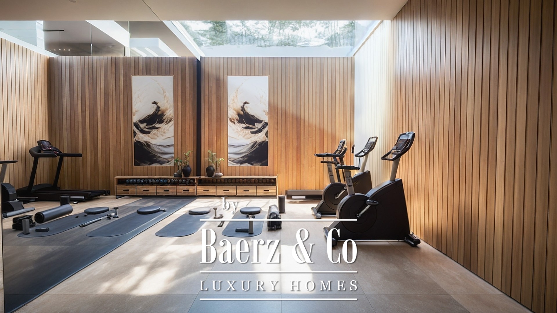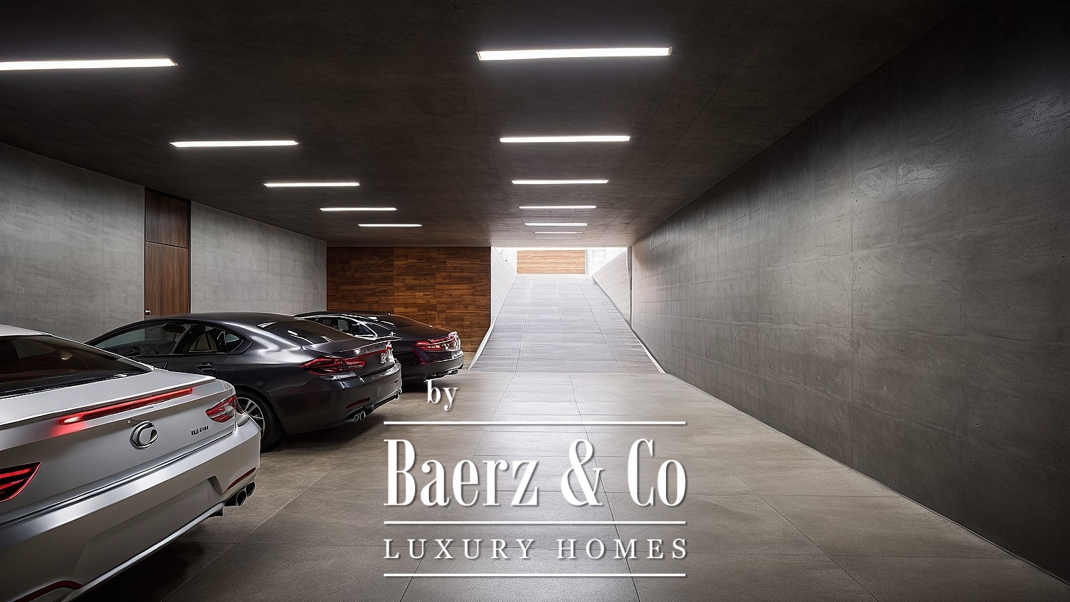 Distribution across three levels brings clarity and comfort. The basement integrates a capacious garage for four cars, a gym, multi-purpose space, storage and technical rooms, all infused with natural light. On the ground floor, the primary living areas feature an expansive dining room opening garden-side toward the pool, fostering a year-round Mediterranean ethos. Two bedrooms and a master suite with dressing room and private bath complete this floor, focusing on privacy and understated elegance.