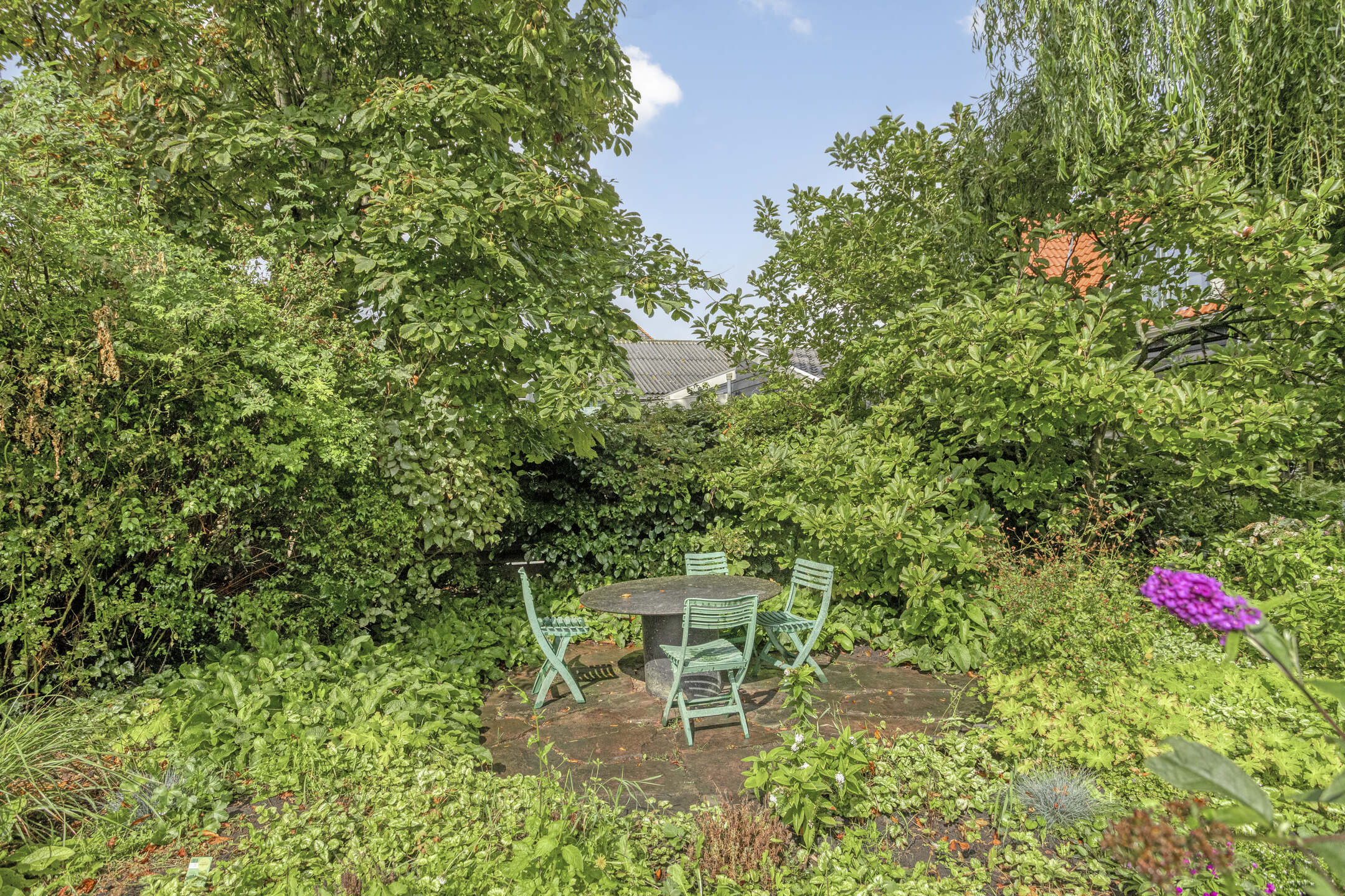 Bright and inviting, with French doors leading to the garden and a cozy wood-burning stove for winter nights. High ceilings and original exposed beams complete the picture. Part of the garage has been integrated into the living area, creating even more space! Planning an extension? The foundation is already in place.