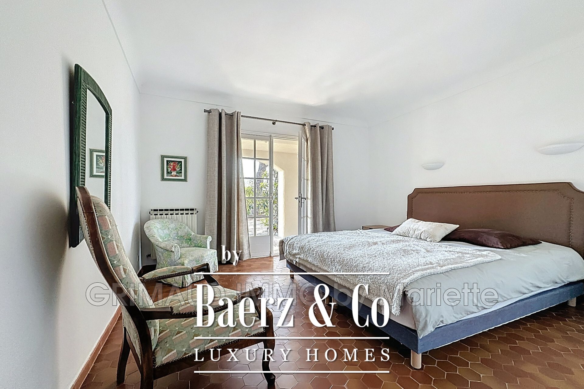 Villa Grimaud sits in a peaceful, verdant setting, capturing panoramic views across the village and surrounding hills. This Provençal style villa, with 308 m² of living space, is arranged on a generous 4,086 m² plot and features a private garage. Offering both privacy and versatility, the villa is divided into two distinct living spaces, well-suited for family gatherings or independent living.