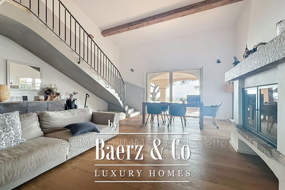 SEA VIEW for this beautiful Provençal villa, peacefully located on a large plot of 4100m² with heated swimming pool, jacuzzi and pétanque court, comprising: entrance hall, living room with fireplace, beautiful independent