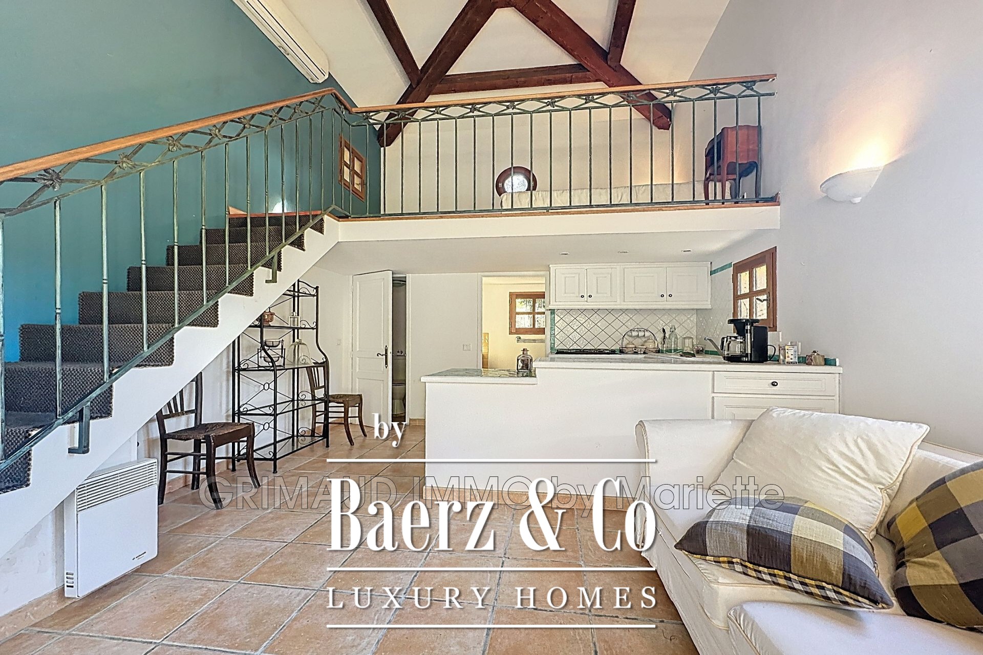 House Grimaud stands quietly on 2500m² of private land, where a tranquil pond and mature grounds shape a serene retreat near the Mediterranean. This house Grimaud property welcomes with an understated entrance, leading to an expansive living room anchored by a fireplace. Natural transitions flow to a TV library, three bedrooms, each served by private bathrooms or showers, and a guest studio with its own kitchen, mezzanine bedroom, and shower room. A one-bedroom apartment extension brings a living room, bedroom, dedicated shower space, and a sauna for reflection and relaxation.