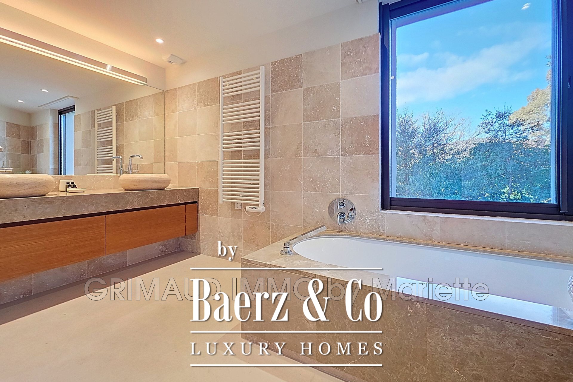 Villa Grimaud offers an expansive living experience, drawing on a generous 306m² footprint discreetly arranged over two levels. This villa Grimaud property holds five inviting bedrooms, complemented by five bathrooms and a separate laundry space; each detail engineered for comfort and quiet functionality. An open plan living room of approximately 90m² flows seamlessly into a fully equipped kitchen, creating spaces that invite relaxation and convivial meals with sea views as a constant backdrop.