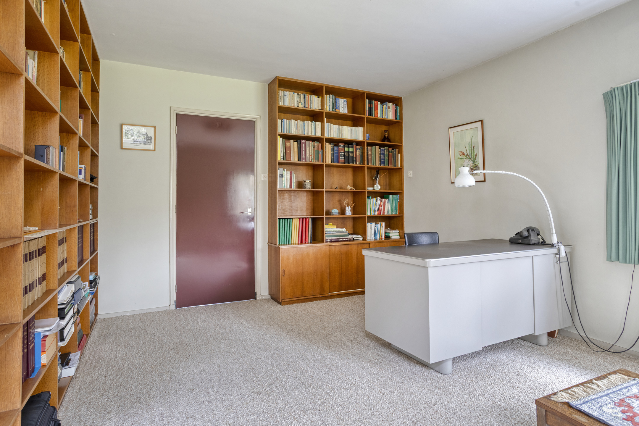 Study, plastered walls, carpeted floor, plastered ceiling;