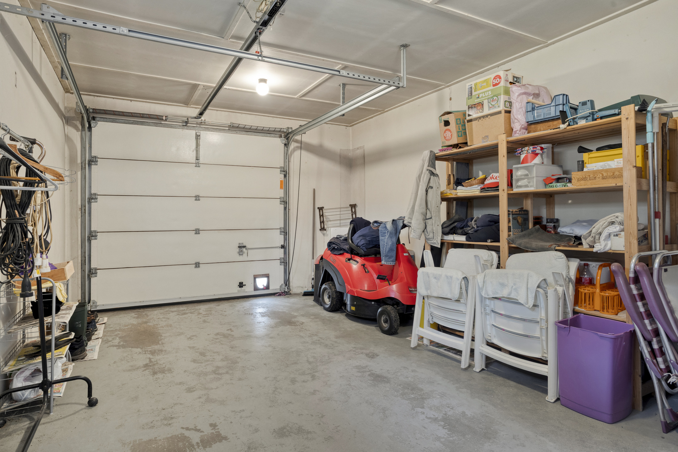 Internal garage with heating and sectional door.