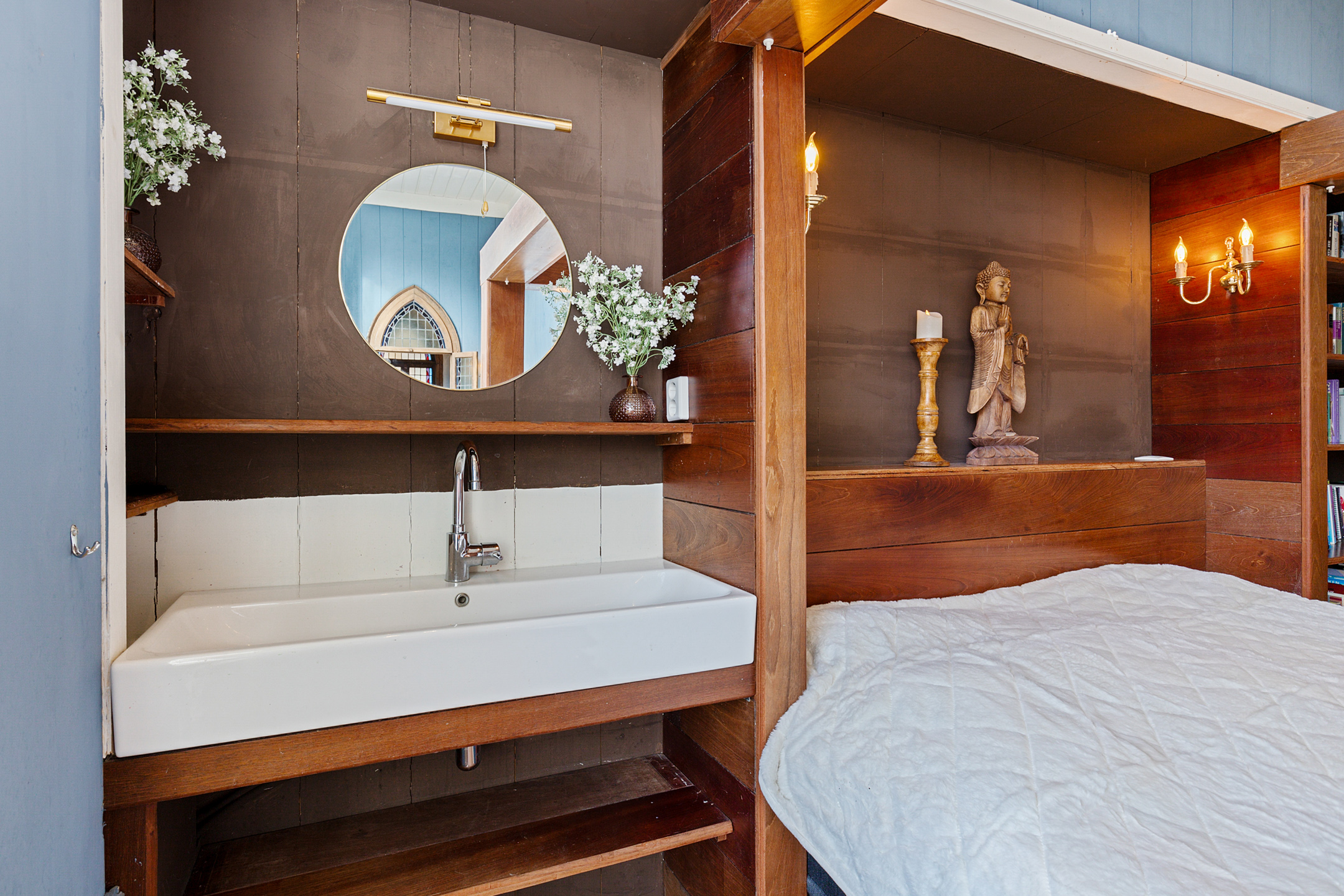 A fixed staircase leads to the second floor. Here is a charming studio apartment with complete kitchen box bed and views over the Franekereind. Directly next to the apartment is the bathroom with washbasin and shower the toilet is separate.