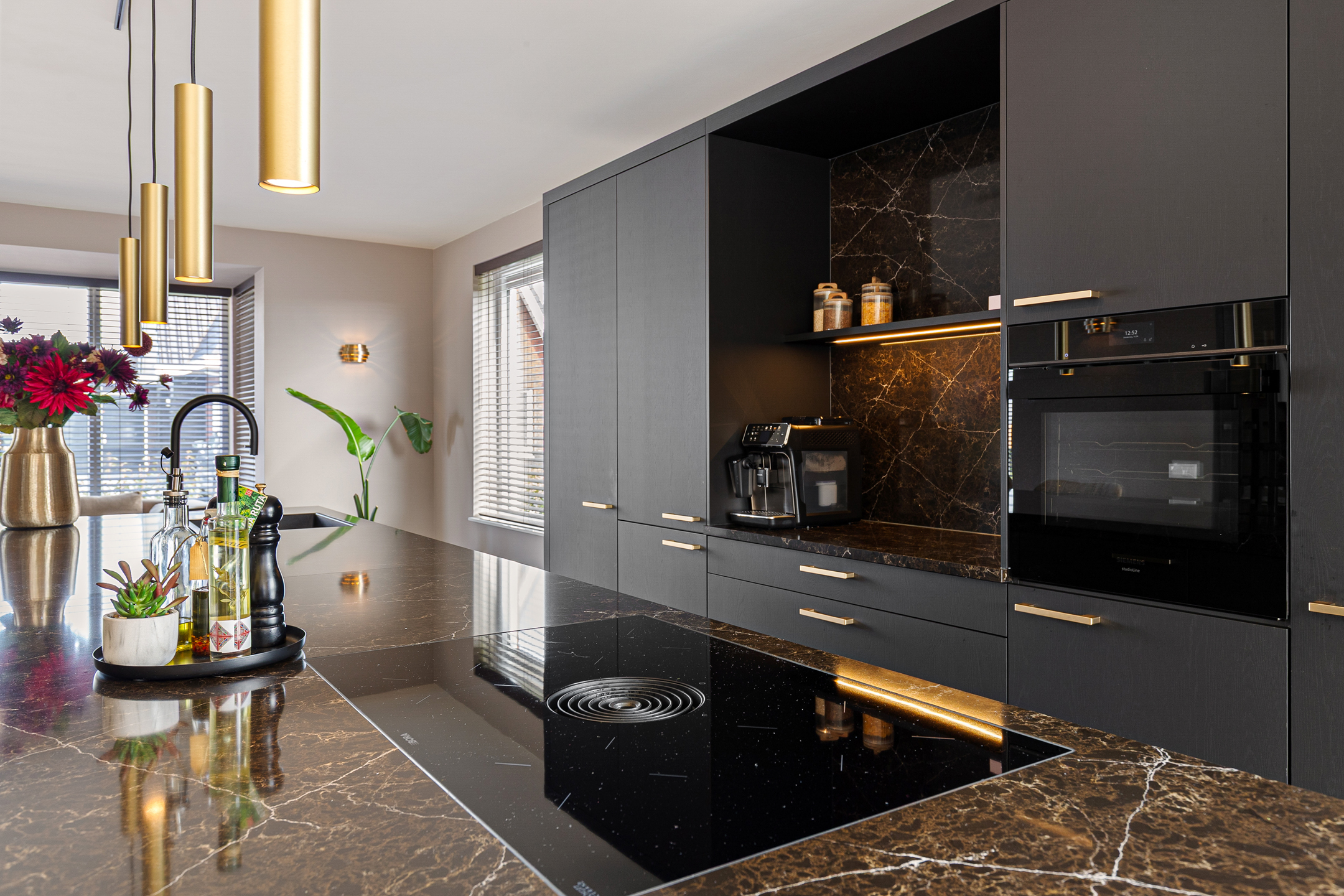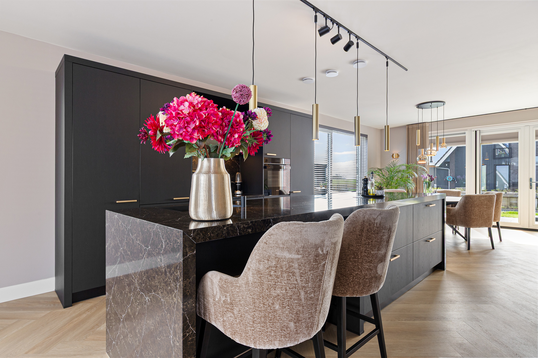 The luxury kitchen forms the heart of the home and features a spacious cooking and washing island along with a wall unit. It is equipped with high-quality built-in appliances, including: Siemens refrigerator, Siemens freezer, Siemens oven, Miele dishwasher, Bora induction hob with integrated extraction, Quooker boiling-water tap. All appliances remain under manufacturer’s warranty.