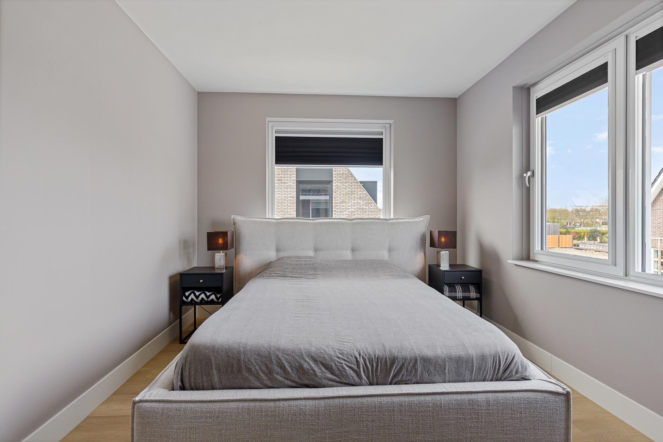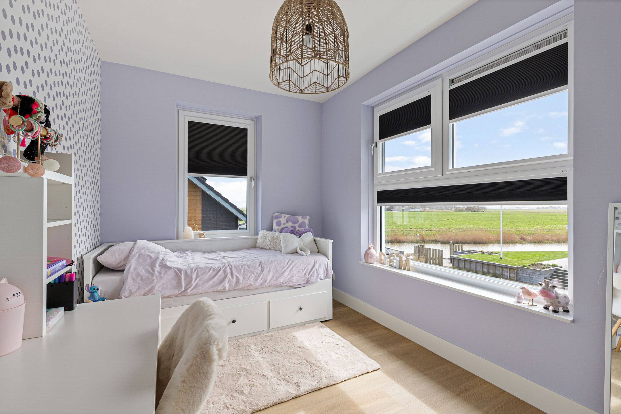 The second bedroom is generously sized and offers angled views over the meadows.