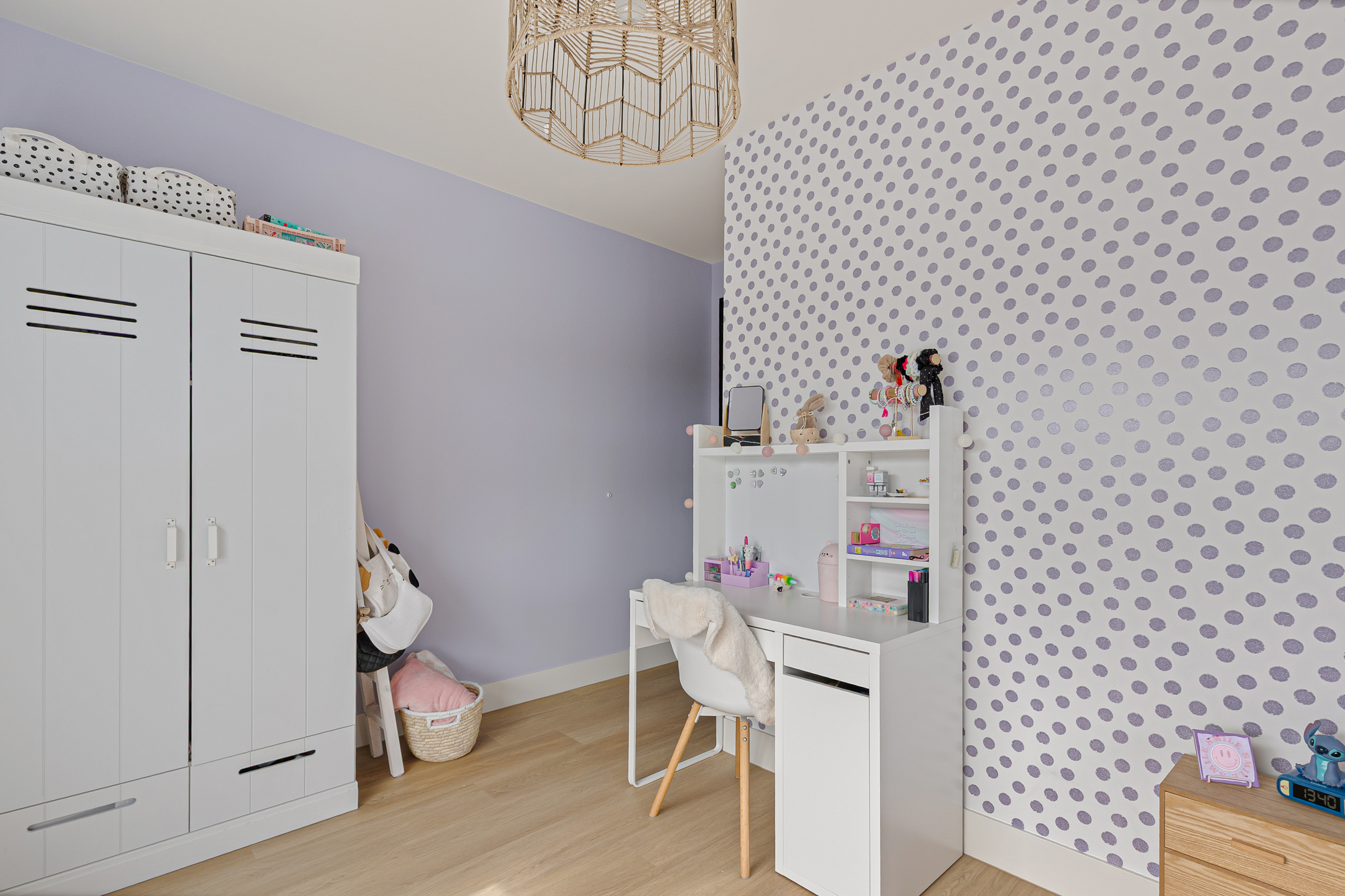 This floor is currently used as a guest room and home office and also offers ample storage space behind the knee walls. Thanks to its generous space, natural light, and practical layout, this is a highly comfortable and multifunctional level.